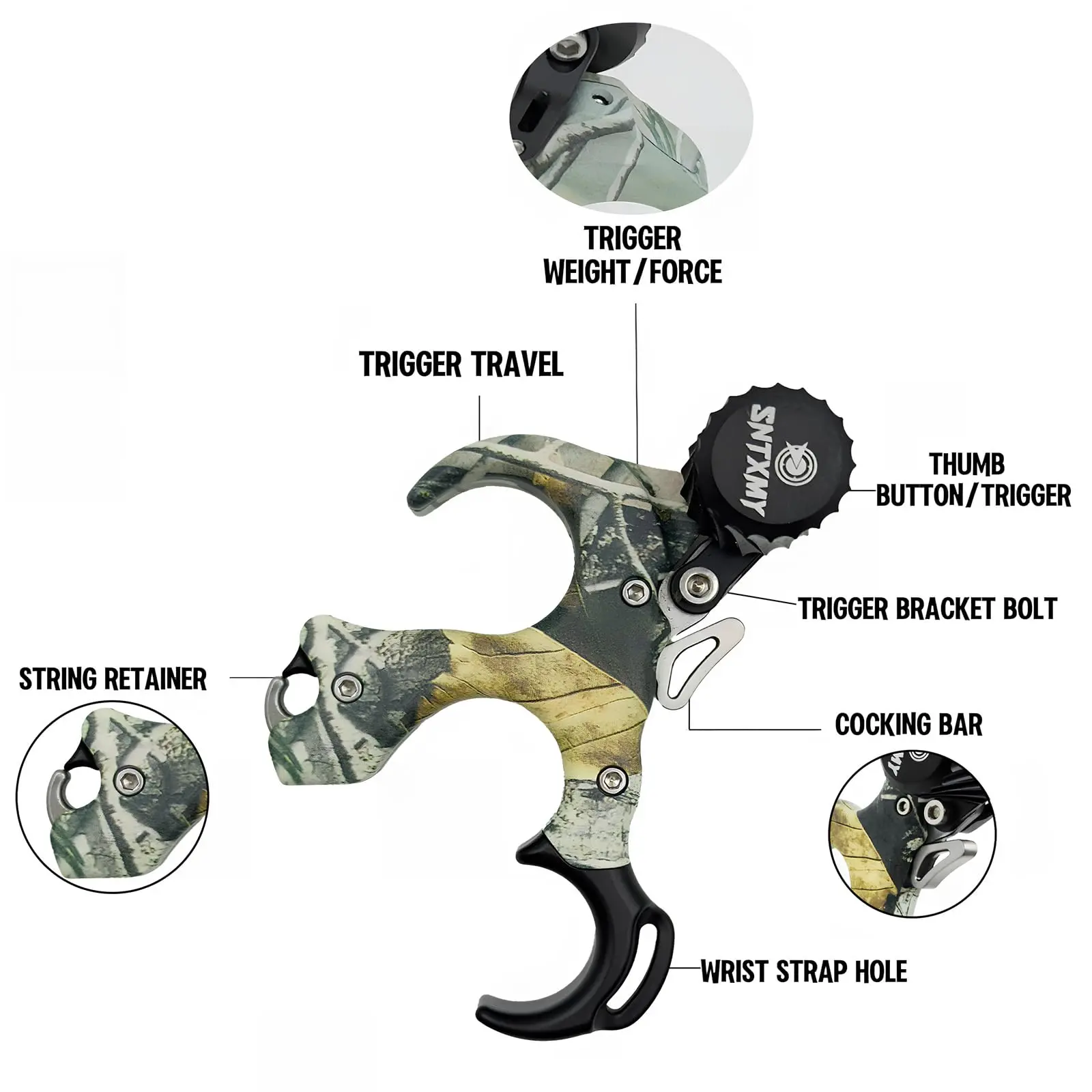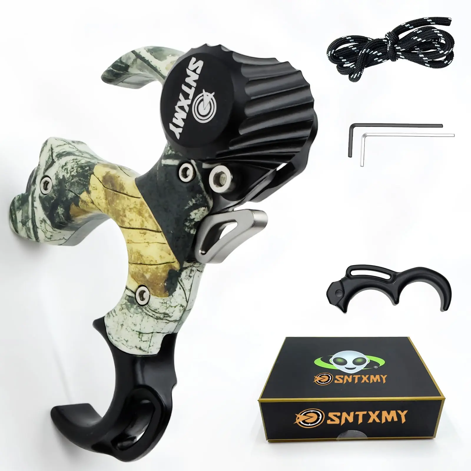 [Adjustable Design]--The Archery release sensitivity can be easily adjusted with the wrench, ensuring good operation and preventing hand injury.Ergonomic design.For most hand sizes.Adjustable orientation of thumb release device,for left and right handers.