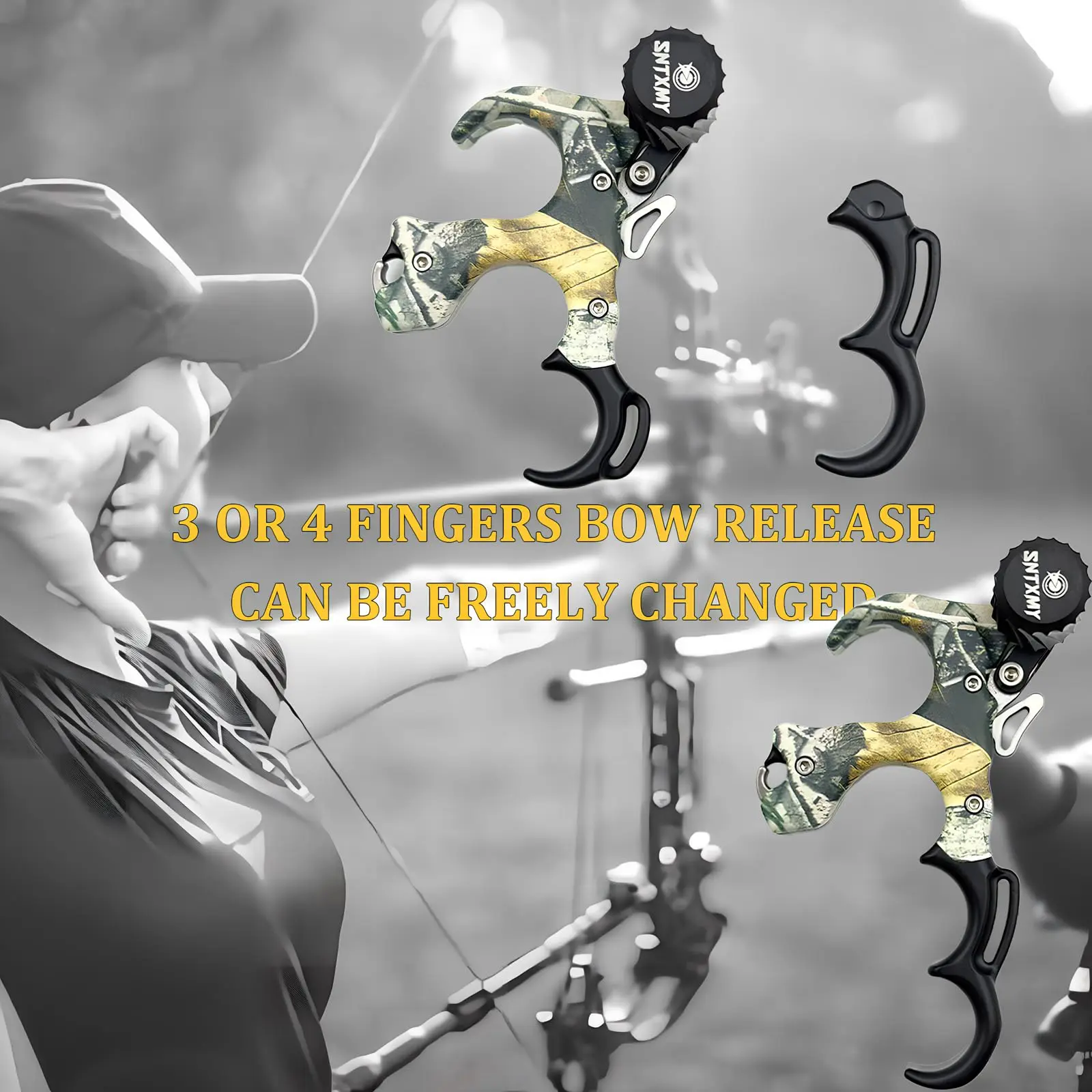 [Durable Construction]--Experience comfort and accuracy with the aluminum alloy made archery compound bow 3 or 4 fingers thumb release aid.Matte surface treatment.Thumb button has a concave-convex design,it can effectively prevent slippage.