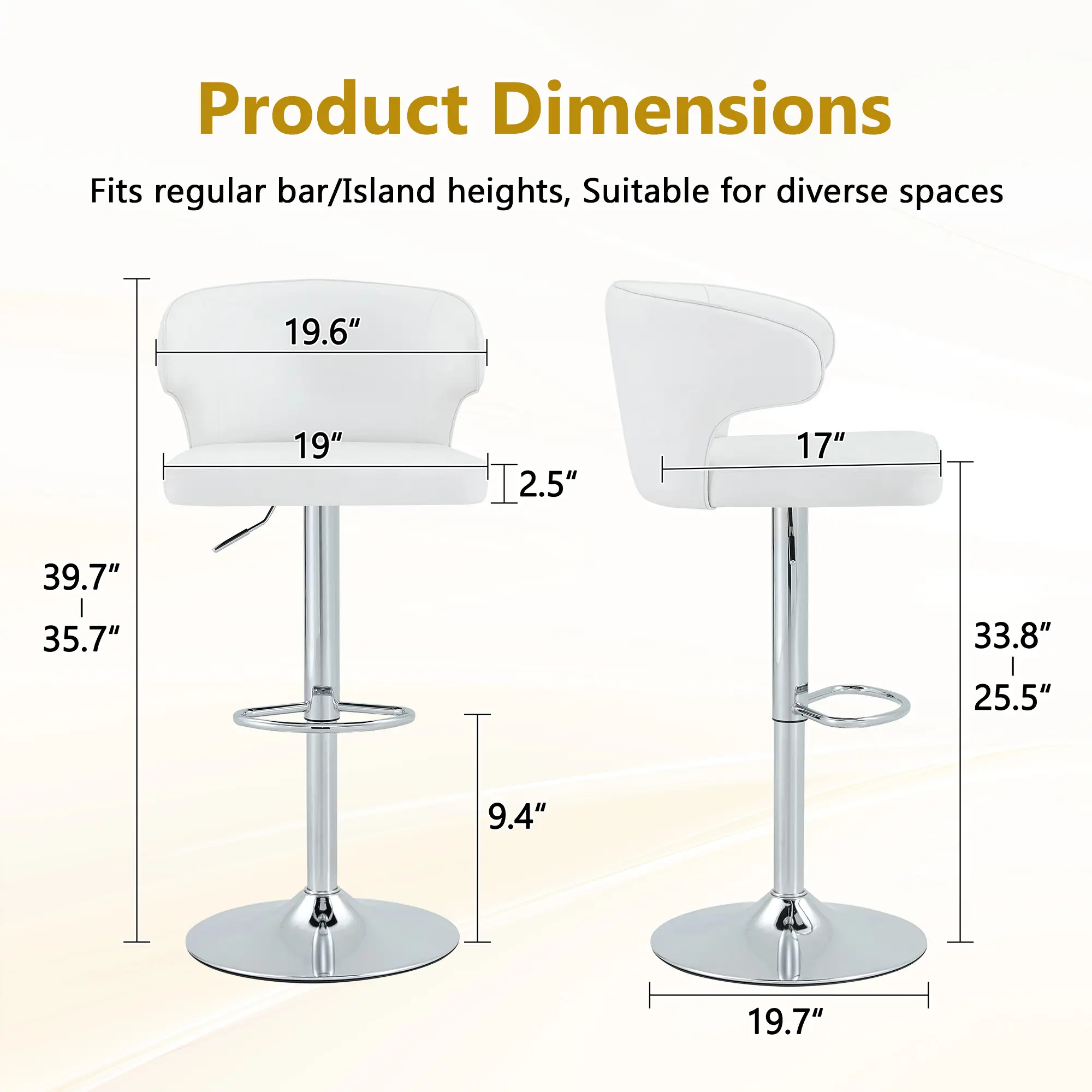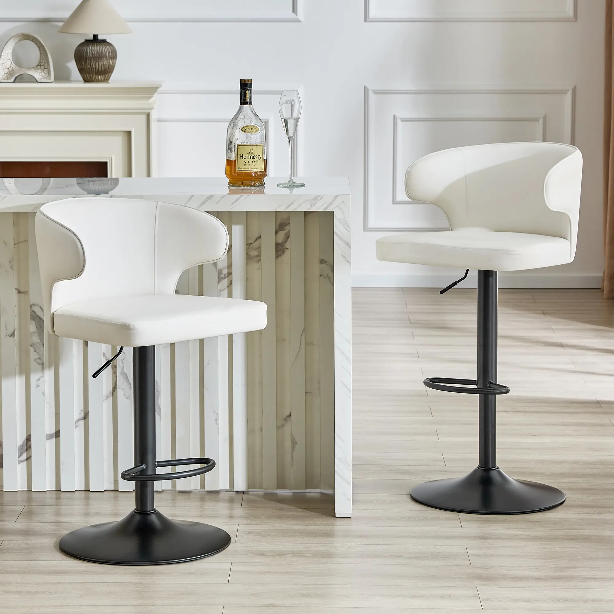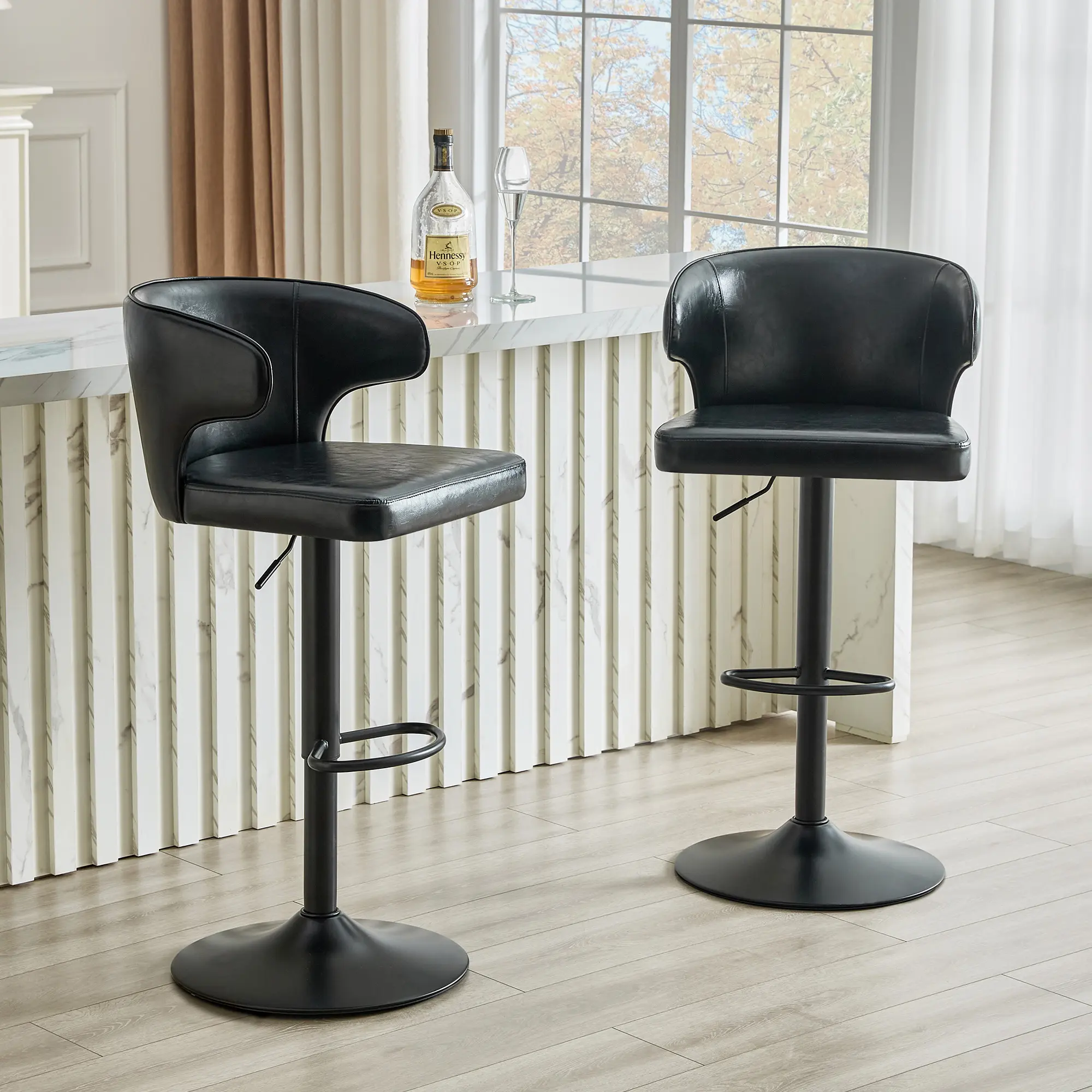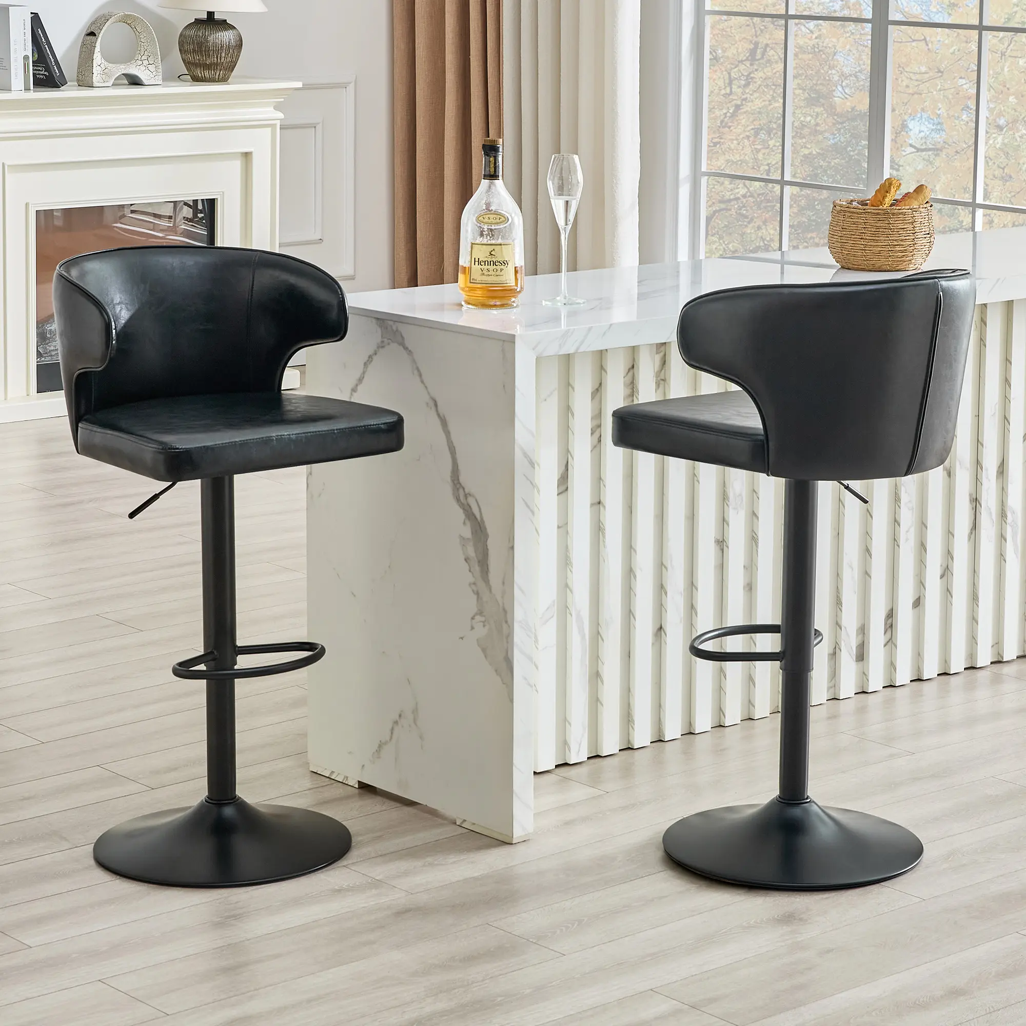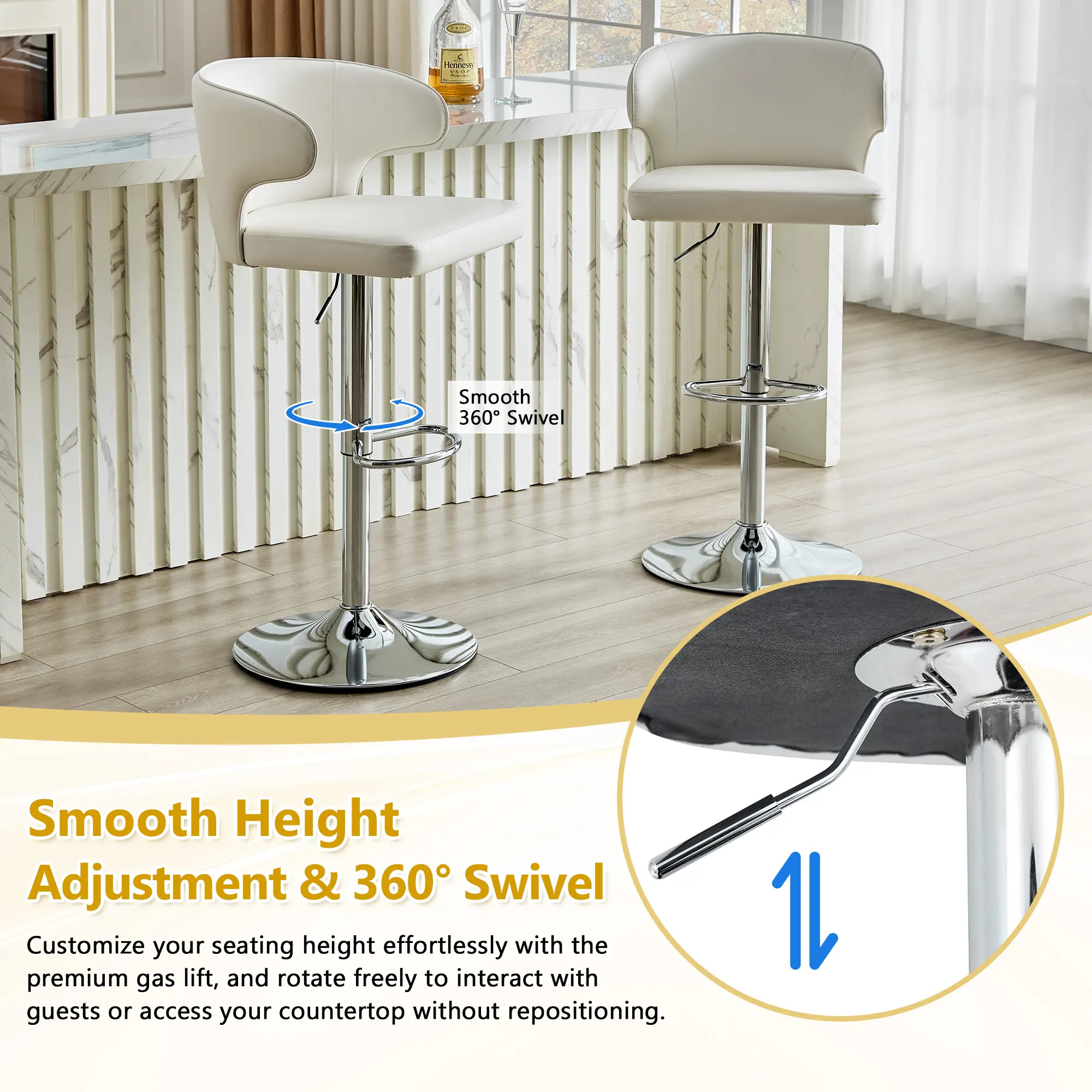·BbLACKPremium Adjustable Swivel Design for Ultimate Flexibility:Easily adjust the bar stool’s height with a high-grade gas lift cylinder, while the 360° swivel function lets you move freely between your counter, kitchen island, or home bar—perfect for casual conversations, quick meals, or entertaining guests.