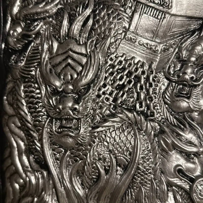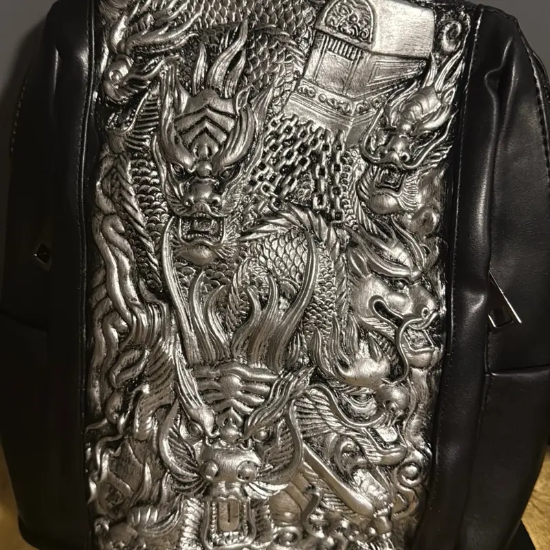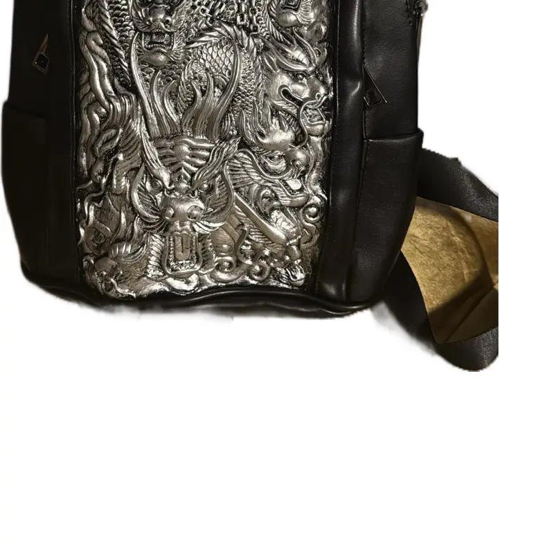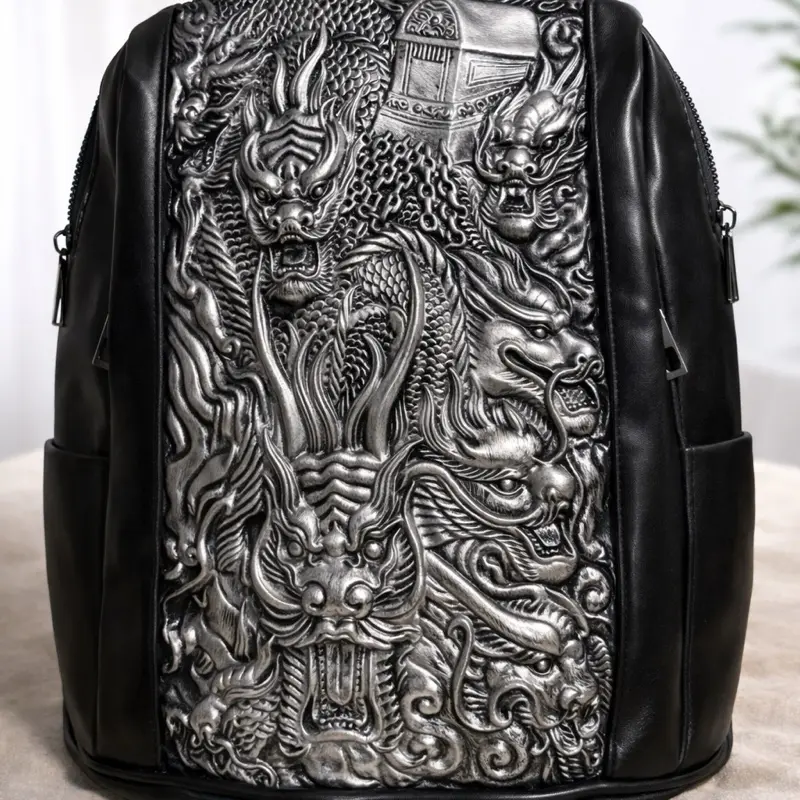 Dragon Dynasty Pack SKU 0000 BLACK SILVER Intricate Dragon Design Leather Backpack for Men