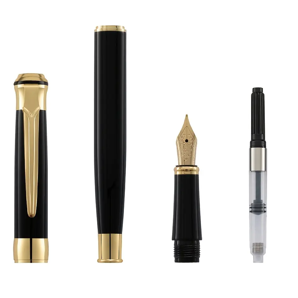 1 pc high-end elegant steel pen, 0.5 mm tip, stylish light luxury, snap cap, stainless steel material, gold-plated tip, built-in converter, 2.6 mm diameter, students/office, holiday gifts—Valentine’s Day, back-to-school season, opening day, birthdays/Christmas, Father’s Day, Mother’s Day, Teacher’s Day, signature/calligraphy/art/steel pen