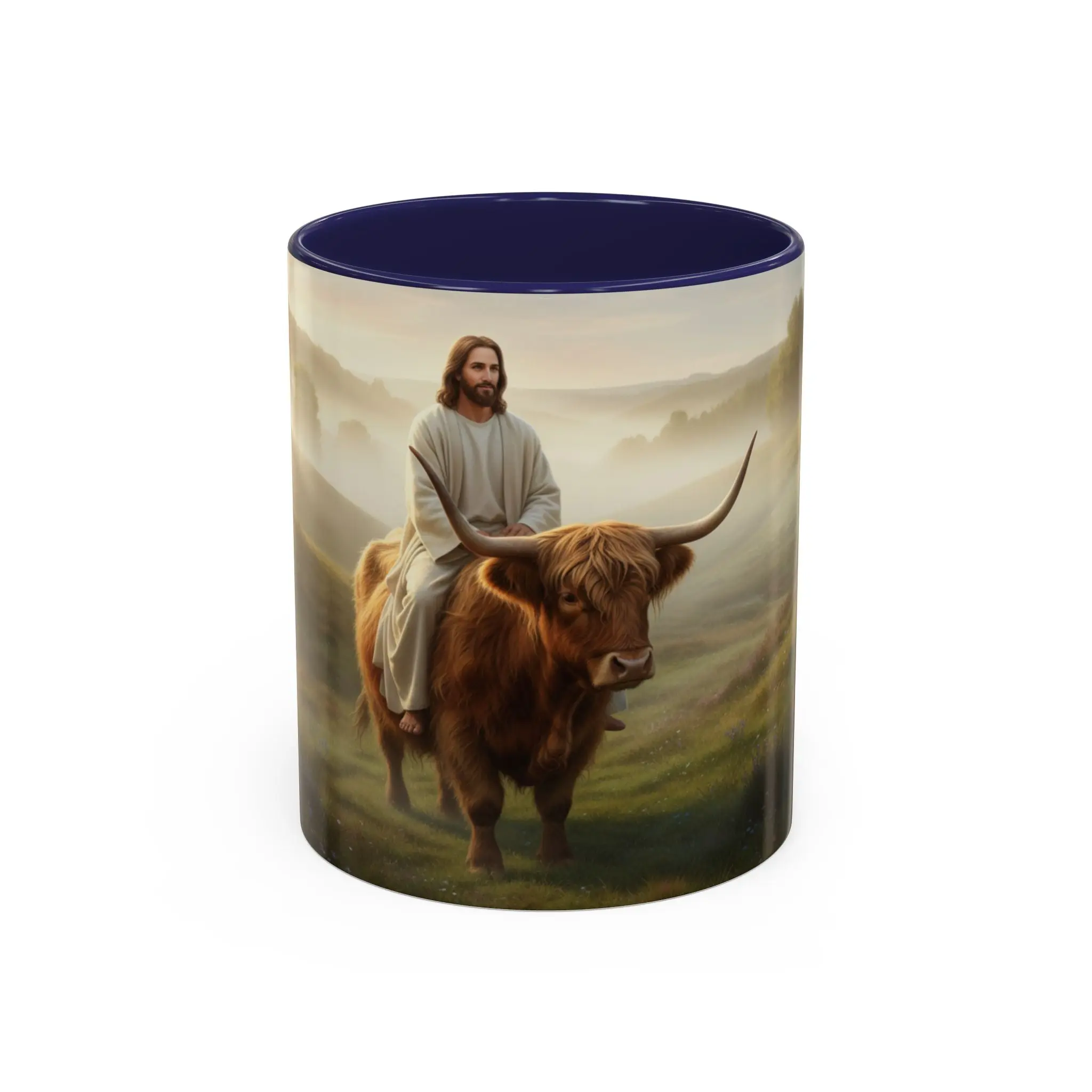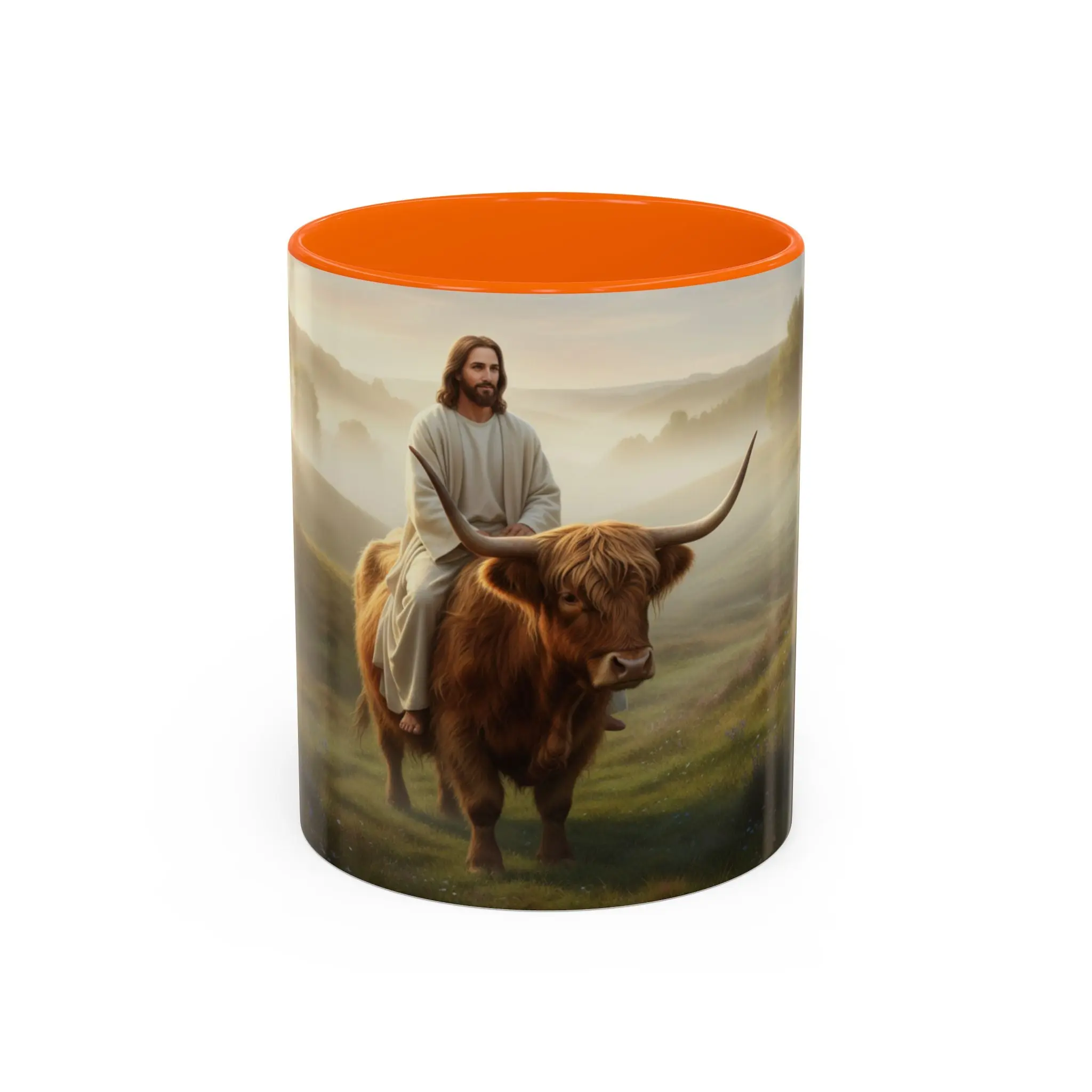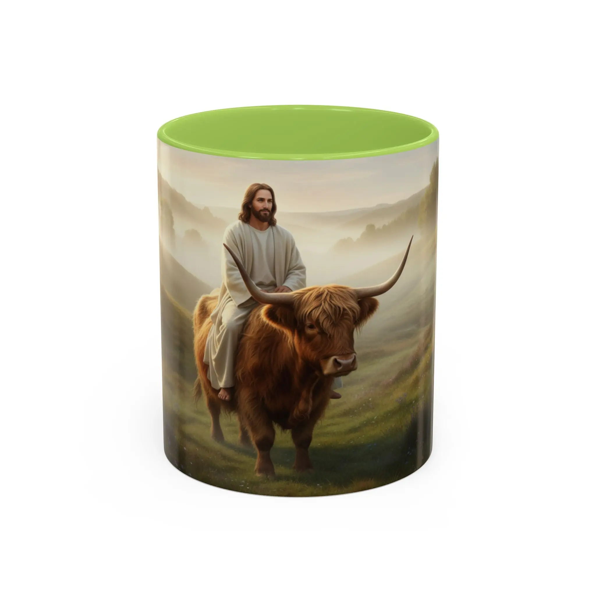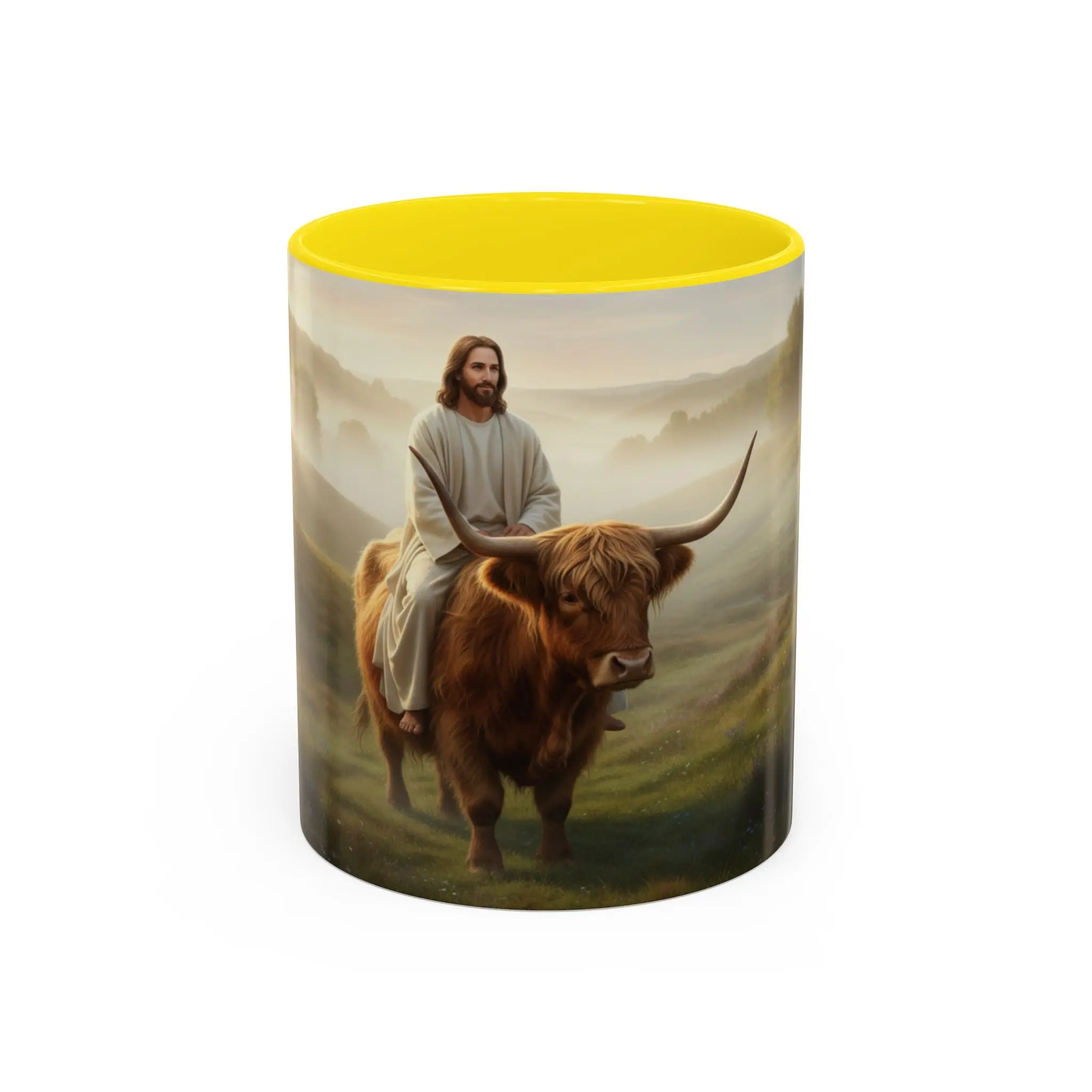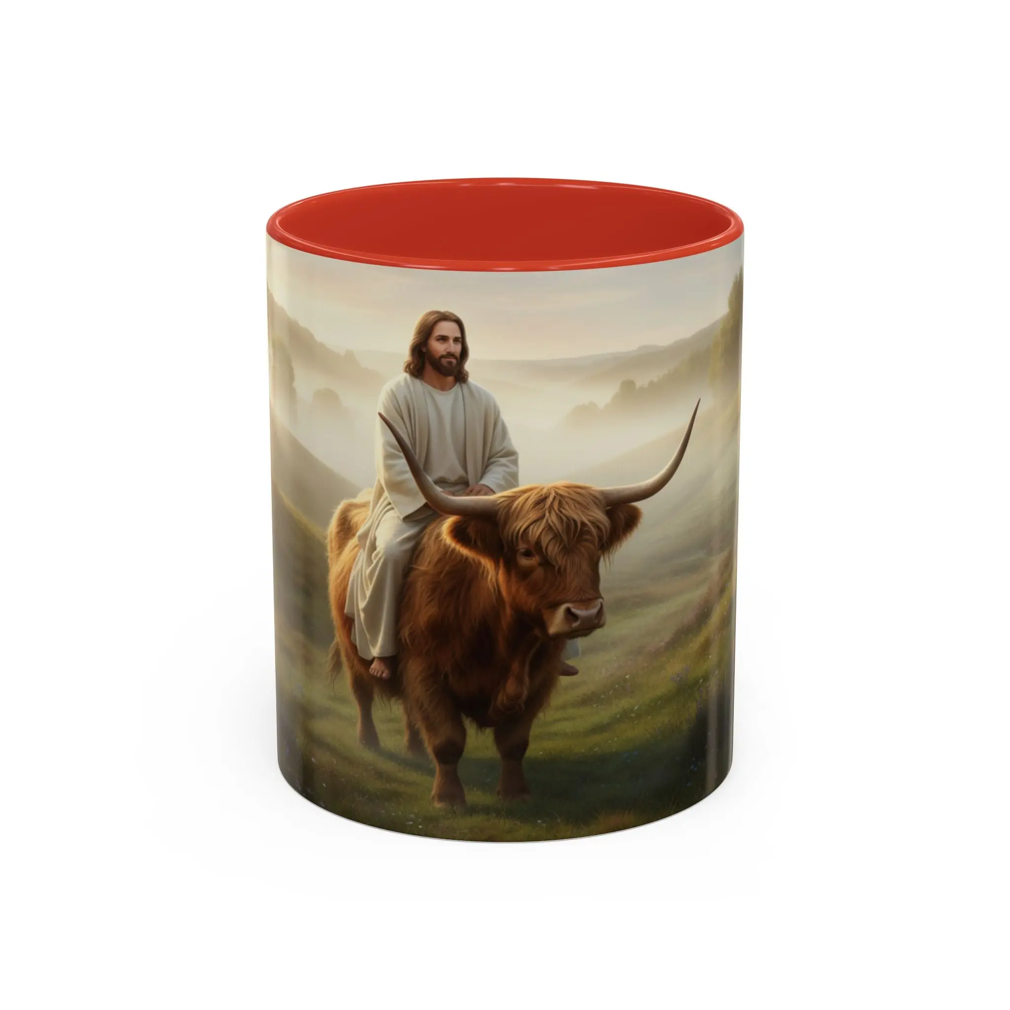 Jesus Riding Highland Cow Coffee Mug — Inspirational Christian Accent Mug (11/15oz)