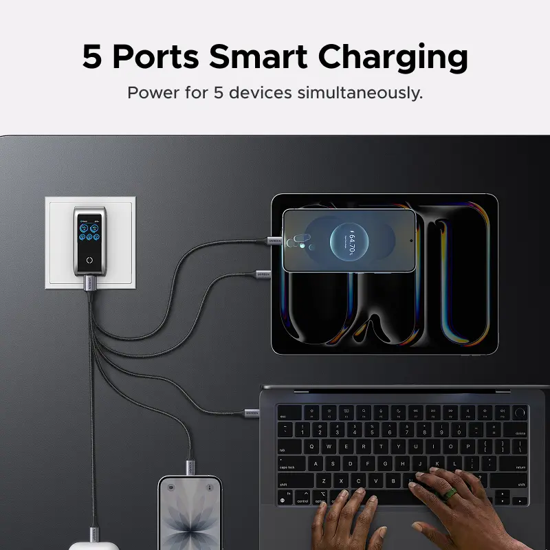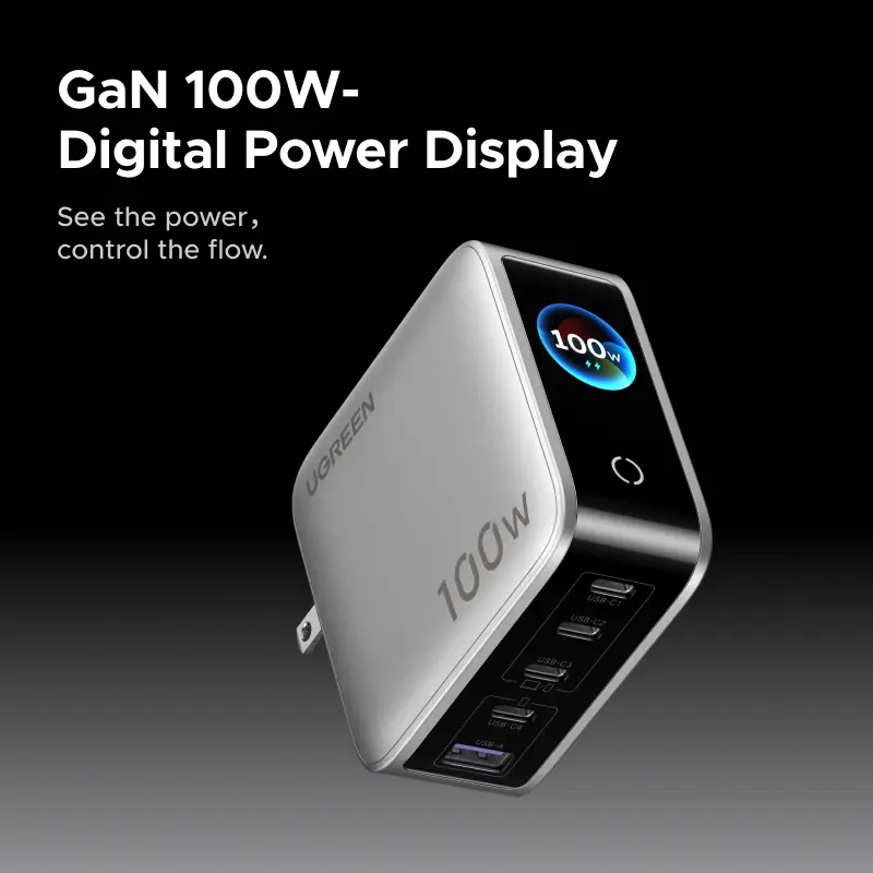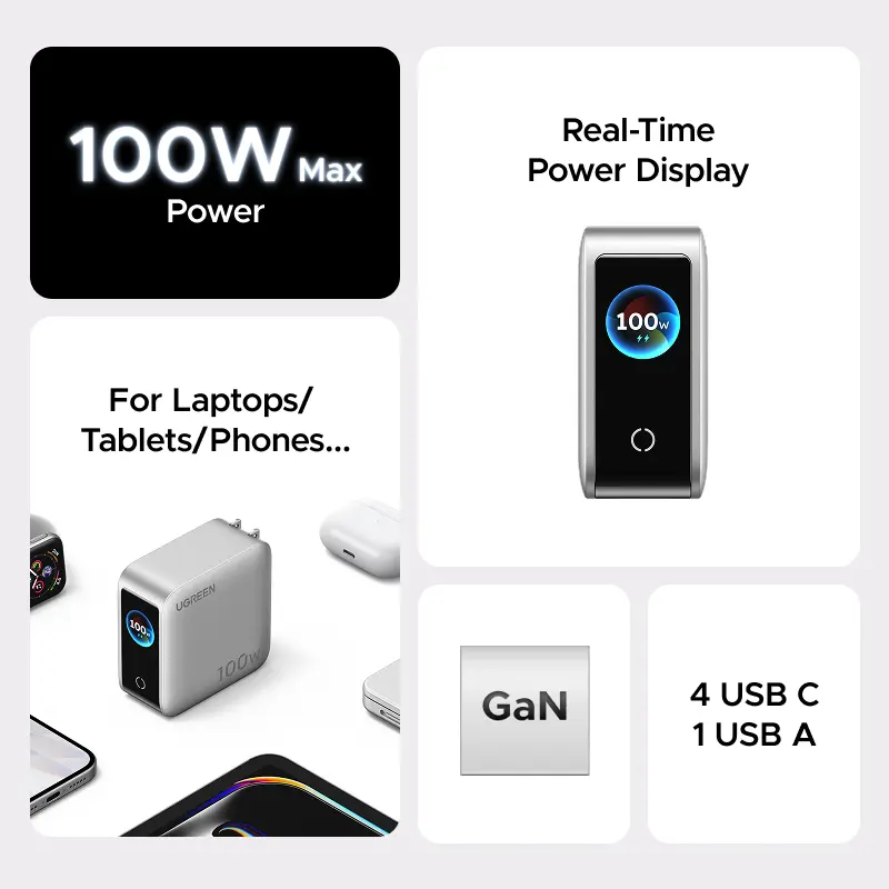 [LIVE ONLY]UGREEN Nexode Pro 100W GaN USB C Charger, 5-Port Fast Type-C Wall Charger Block with Smart Display Compatible with MacBook Pro/Air, iPhone 17/16 Series, Galaxy, iPad Pro, Steam Deck