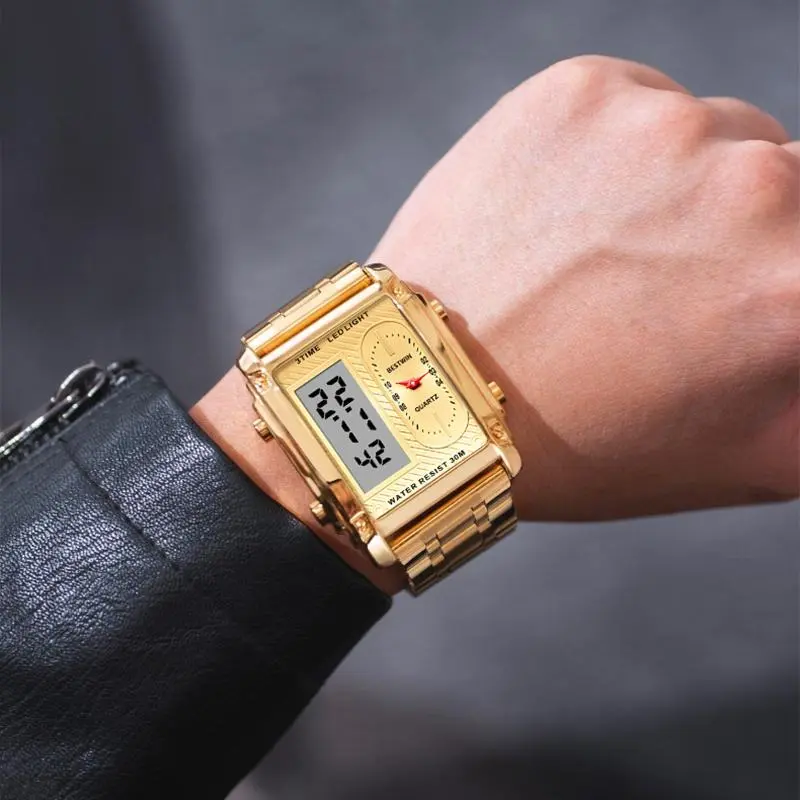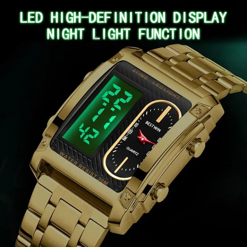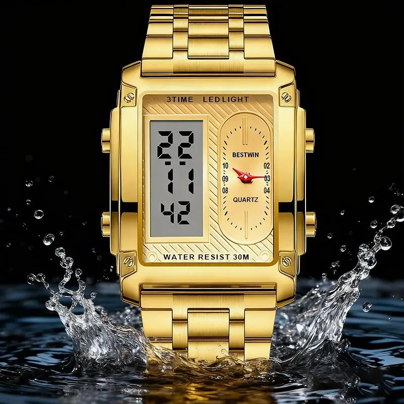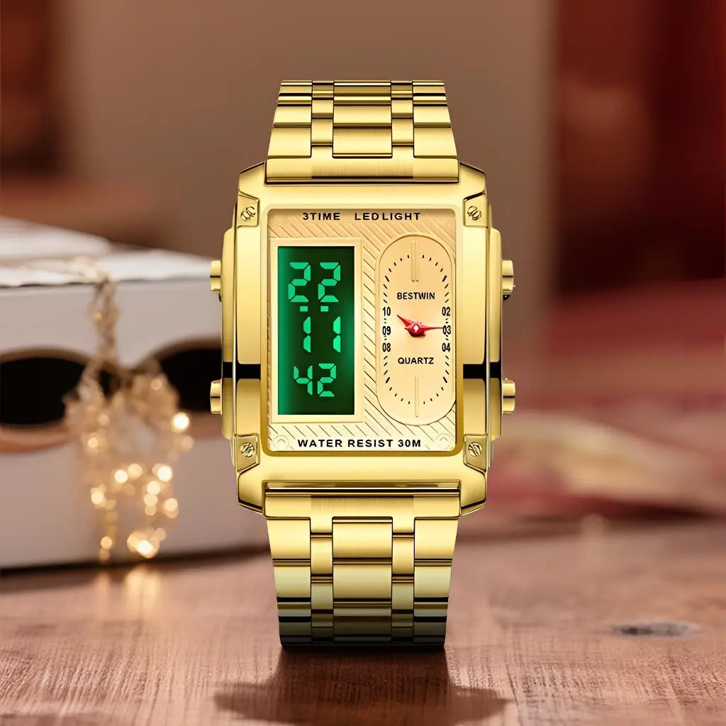 Luxury Racing men's square creative dual-movement multifunctional sports watch, featuring a luxurious triple-time design, water resistance, luminous dial,Exuding a minimalist aesthetic, it is elegant, durable, and the perfect choice for everyday wear.