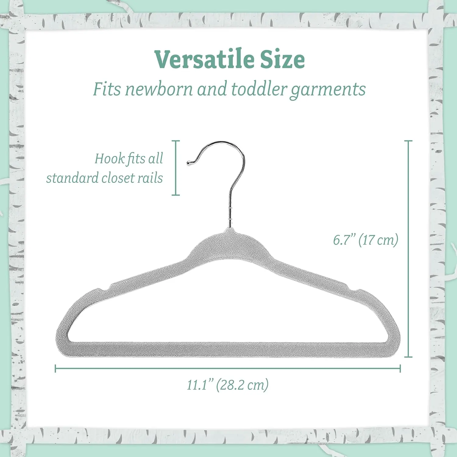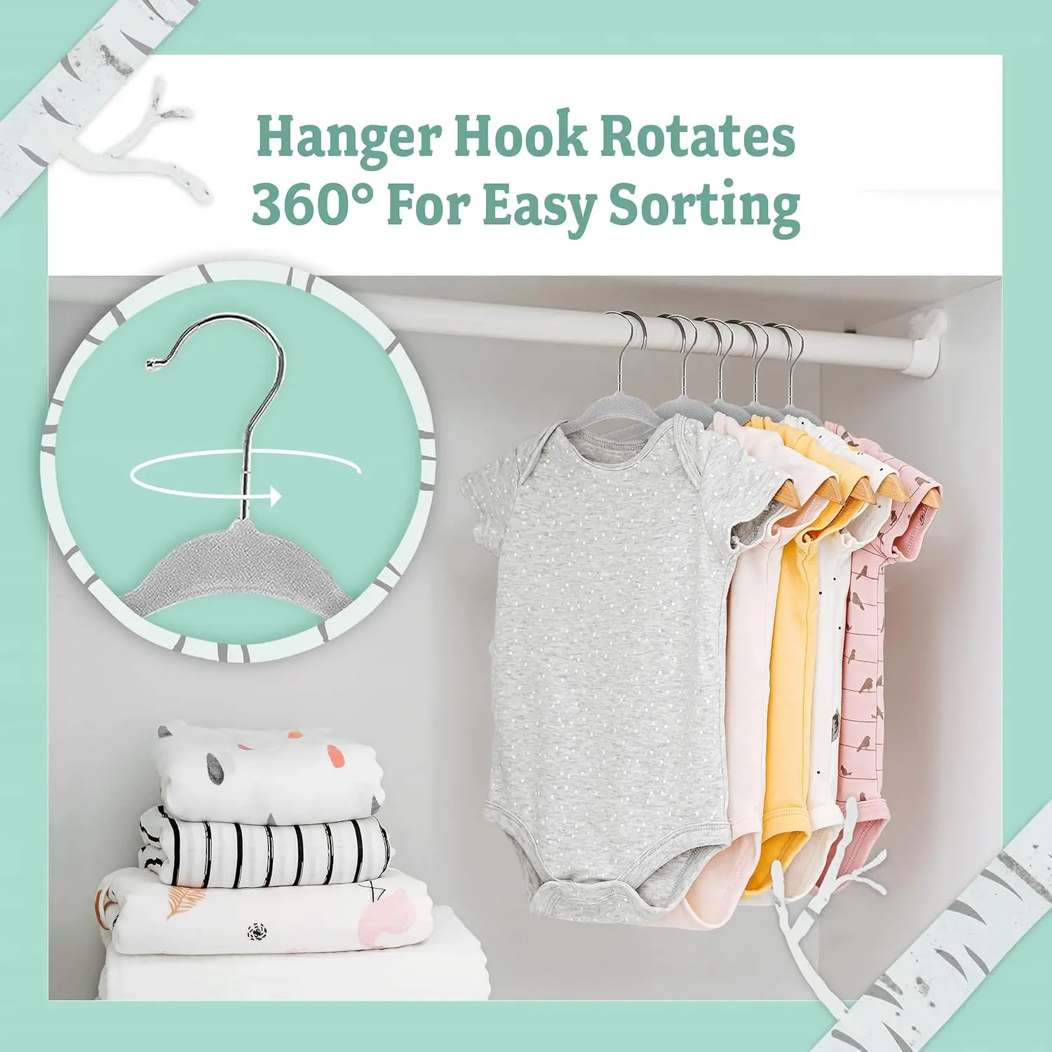 Our velvet baby hangers with swivel hooks pair perfectly with BabyNest dividers (sold separately) to make laundry-time easy for busy parents.