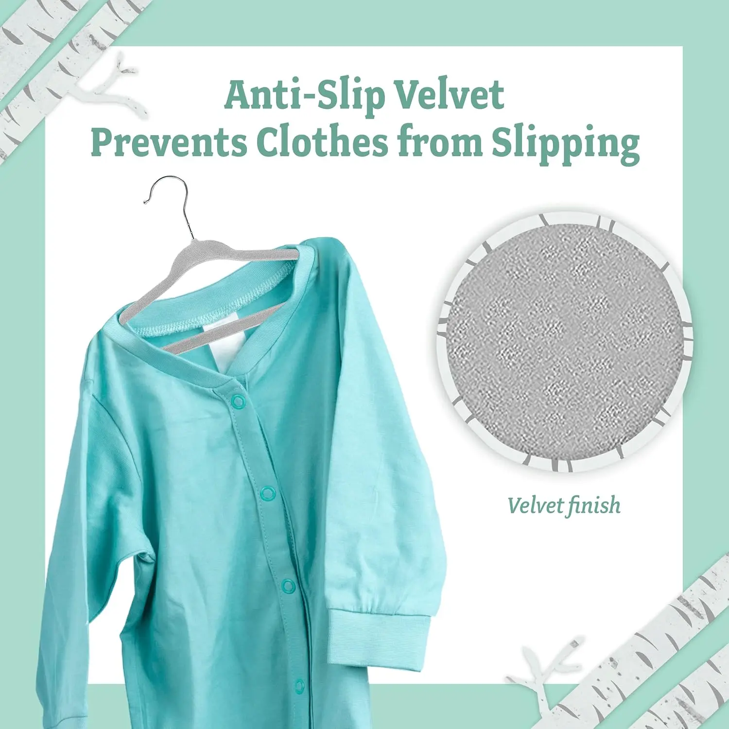 · Anti-slip Velvet: Our baby closet hangers are made with anti-slip velvet to grip each item firmly. Reinforced edges provide stability for your baby cloth.
