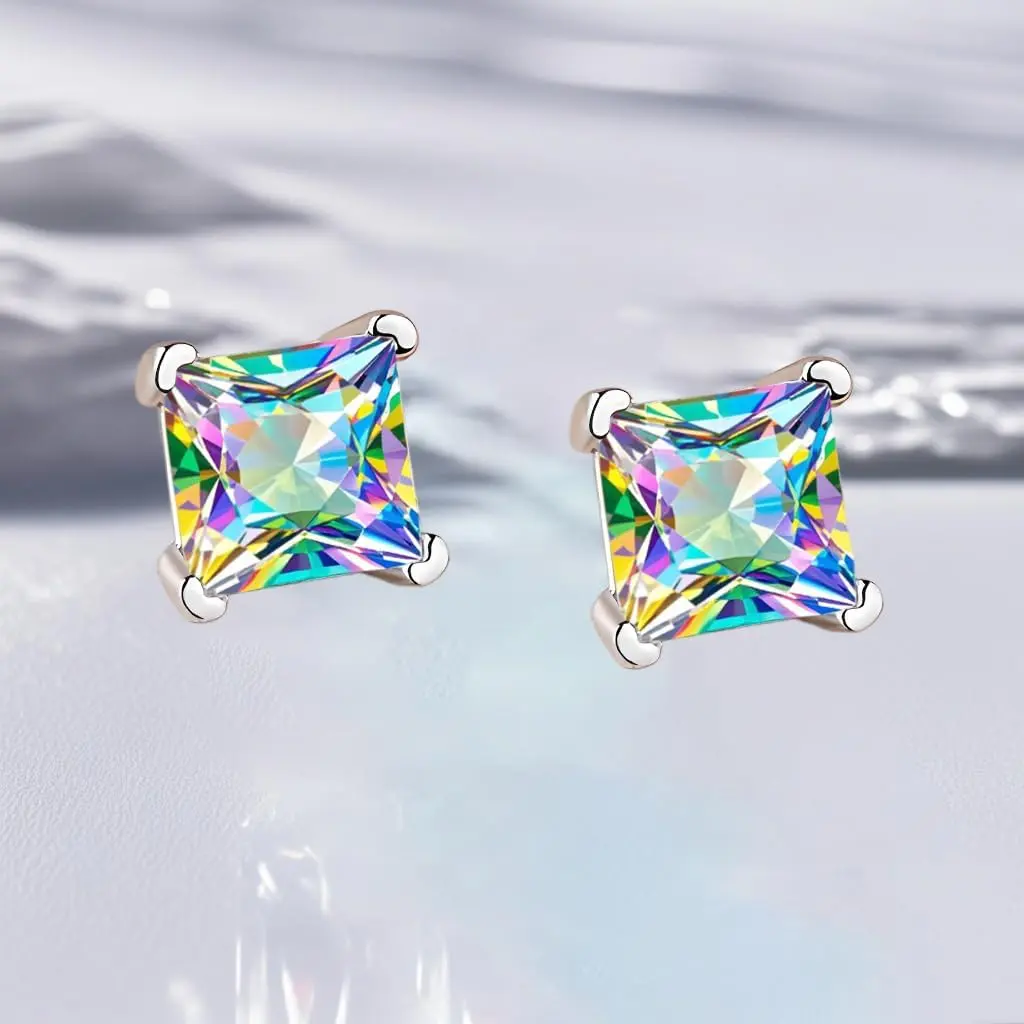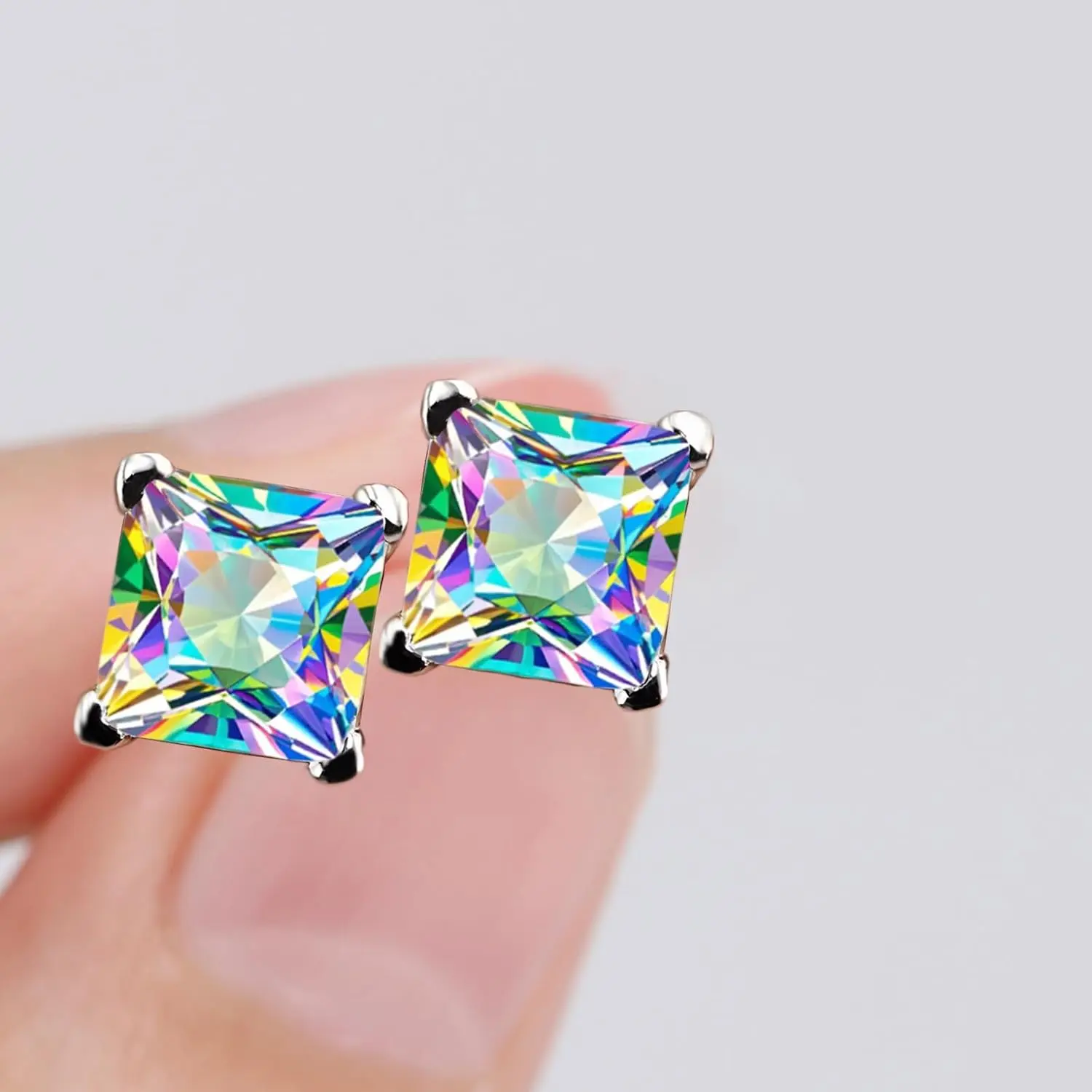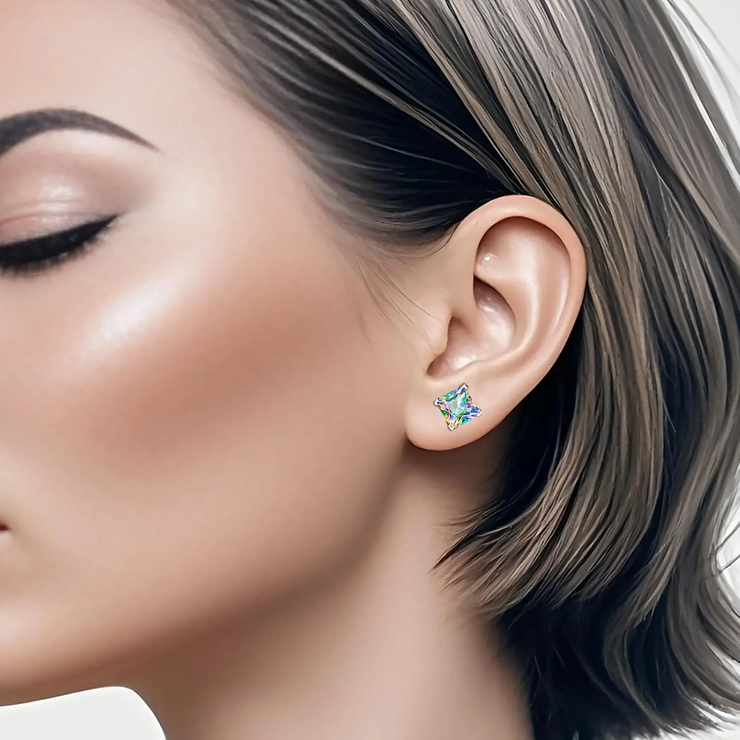 925 sterling silver stud earrings plated white gold; Three-layers plating, long lasting color preserving; Delicately polished
