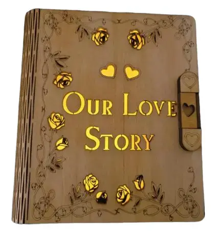 Light up your most cherished memories with a keepsake that literally glows. This precision laser-cut wooden book is more than a box; it’s a vessel for your unique story."
