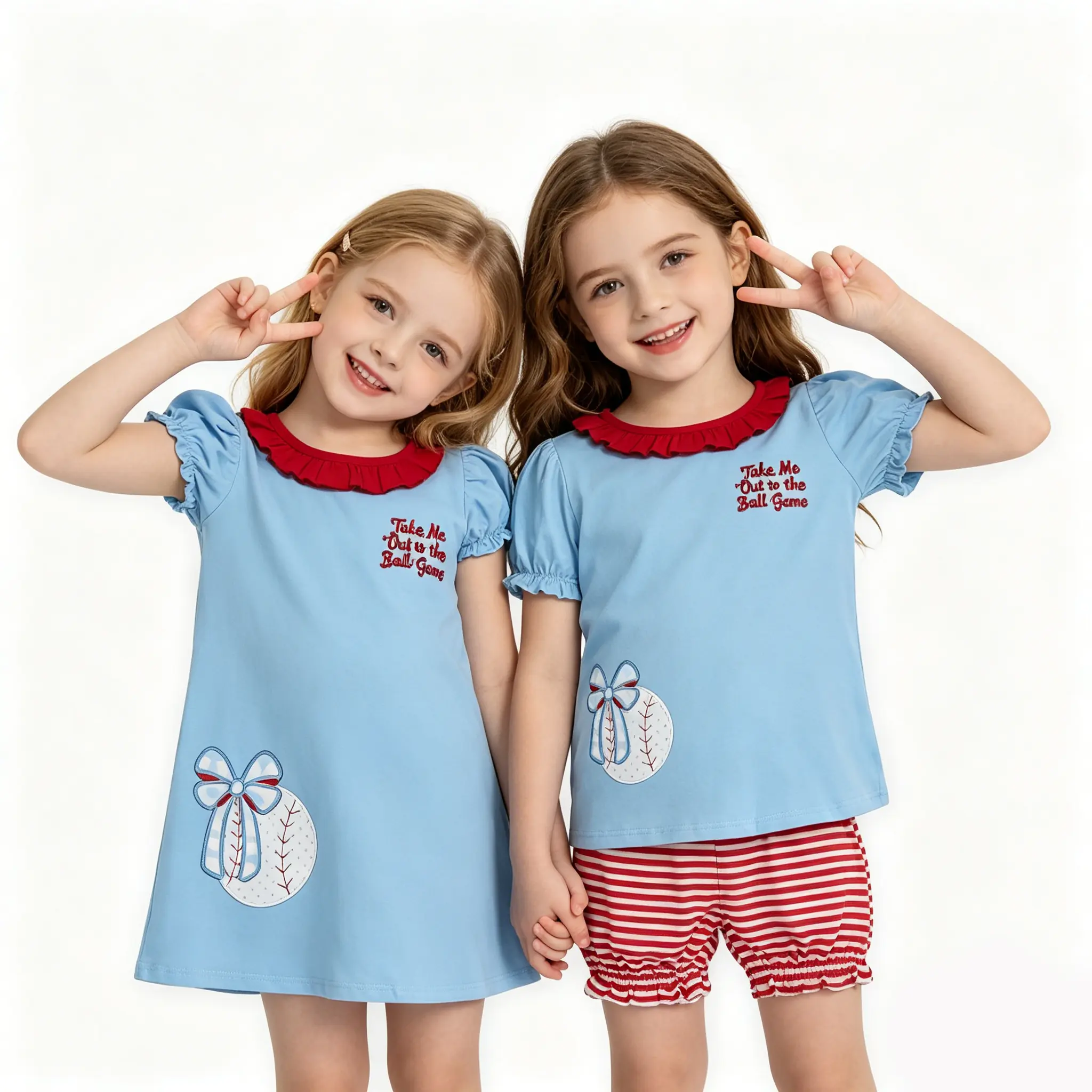 et your little stars game-day ready with our adorable Matching Sister Clothes Baseball Set! Whether you're heading to a baseball game, a family cookout, or just want the cutest twin photos, this matching set for girls is a home run.