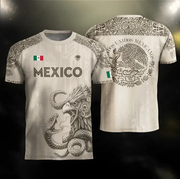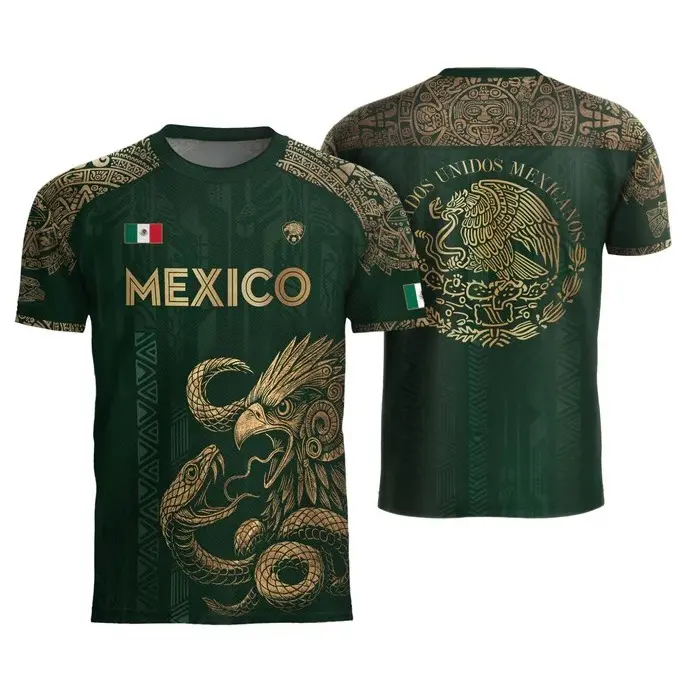 Mexico Aztec Eagle Heritage Soccer Jersey, Fitted Casual Style for All Seasons, Unique Animal and Tribal Design, Classic Throwback Jersey, All-Over Print Soccer Jersey