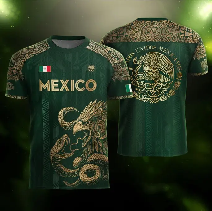 5. Mexico Aztec Eagle Heritage Soccer Jersey, Fitted Casual Style for All Seasons, Unique Animal and Tribal Design, Classic Throwback Jersey, All-Over Print Soccer Jersey