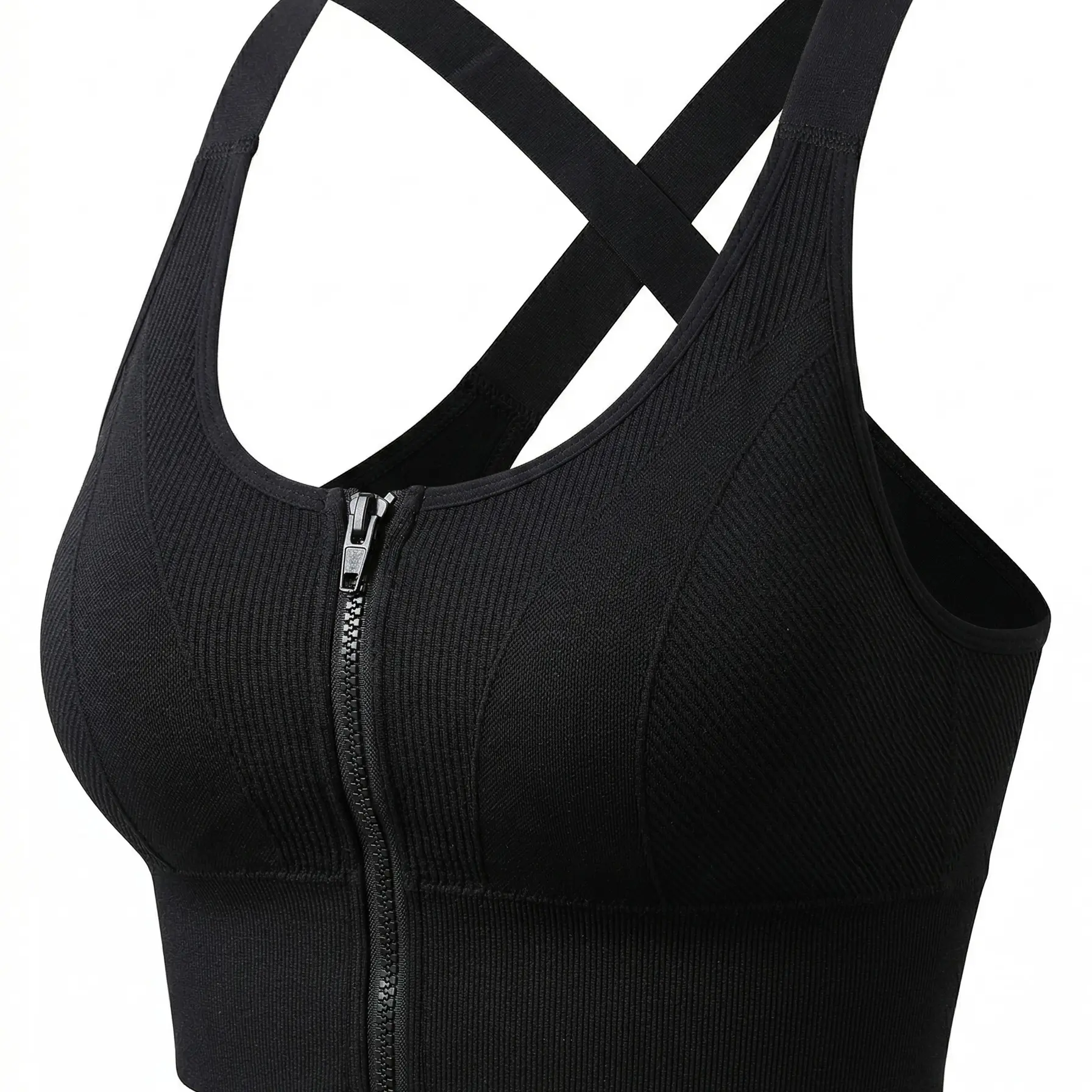 5. O2K4 Oxygen Yoga Zip Front Workout Sports Bras Yoga Camisole Sleeveless Basic Tops Gym Activewear Bra
