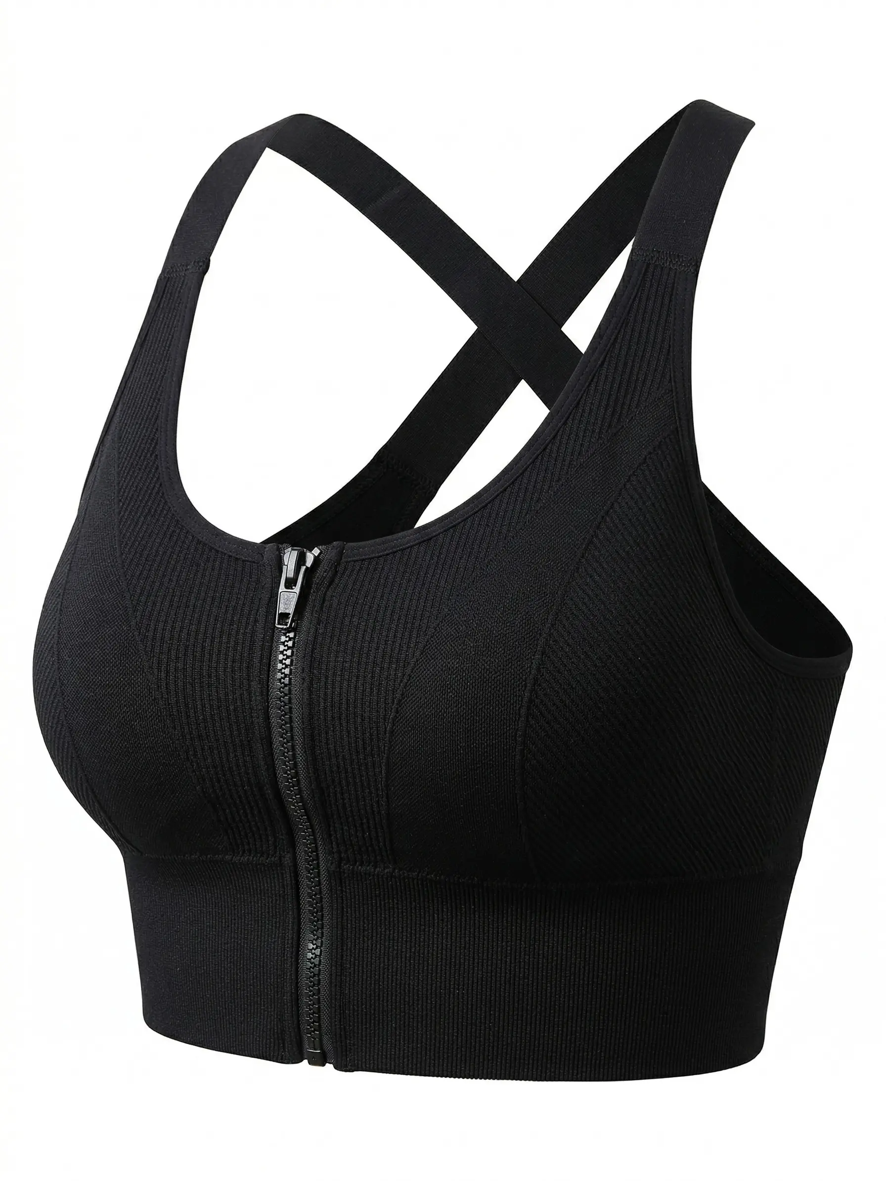 O2K4 Oxygen Yoga Zip Front Workout Sports Bras Yoga Camisole Sleeveless  Basic Tops Gym Activewear Bra