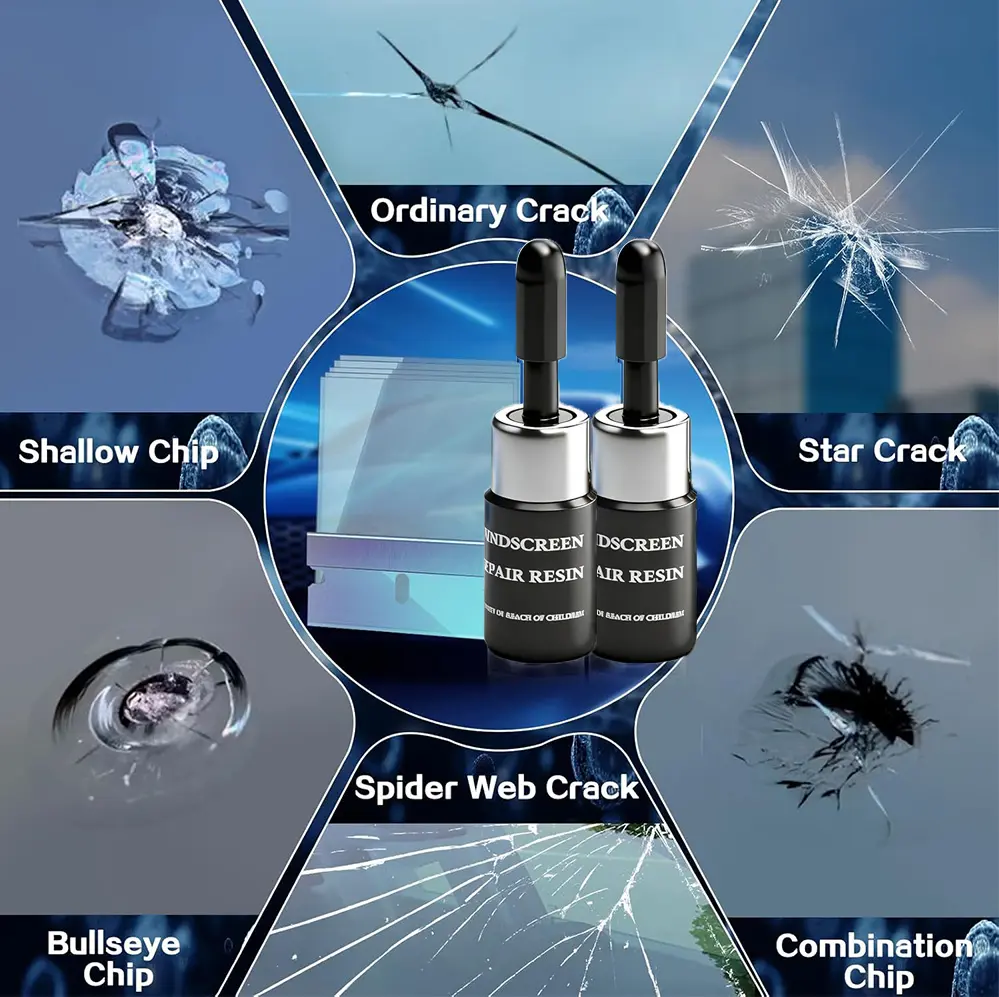 ·All-Round Damage Coverage: Expertly handles a full range of glass issues, including bullseye chips, star-shaped fractures, single-line cracks, radial splits, and web-like reticular damages. Crafted with high-purity, ultra-transparent imported resin, our repair formula seeps deep into micro-scale cracks, rebuilding structural stability and clarity for results that are nearly undetectable to the naked eye.