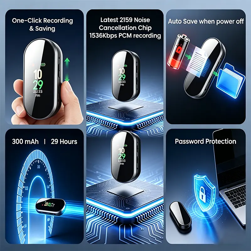 This multifunctional digital voice recorder integrates portability, HD audio and easy operation, suitable for daily use, work, study and gifting.