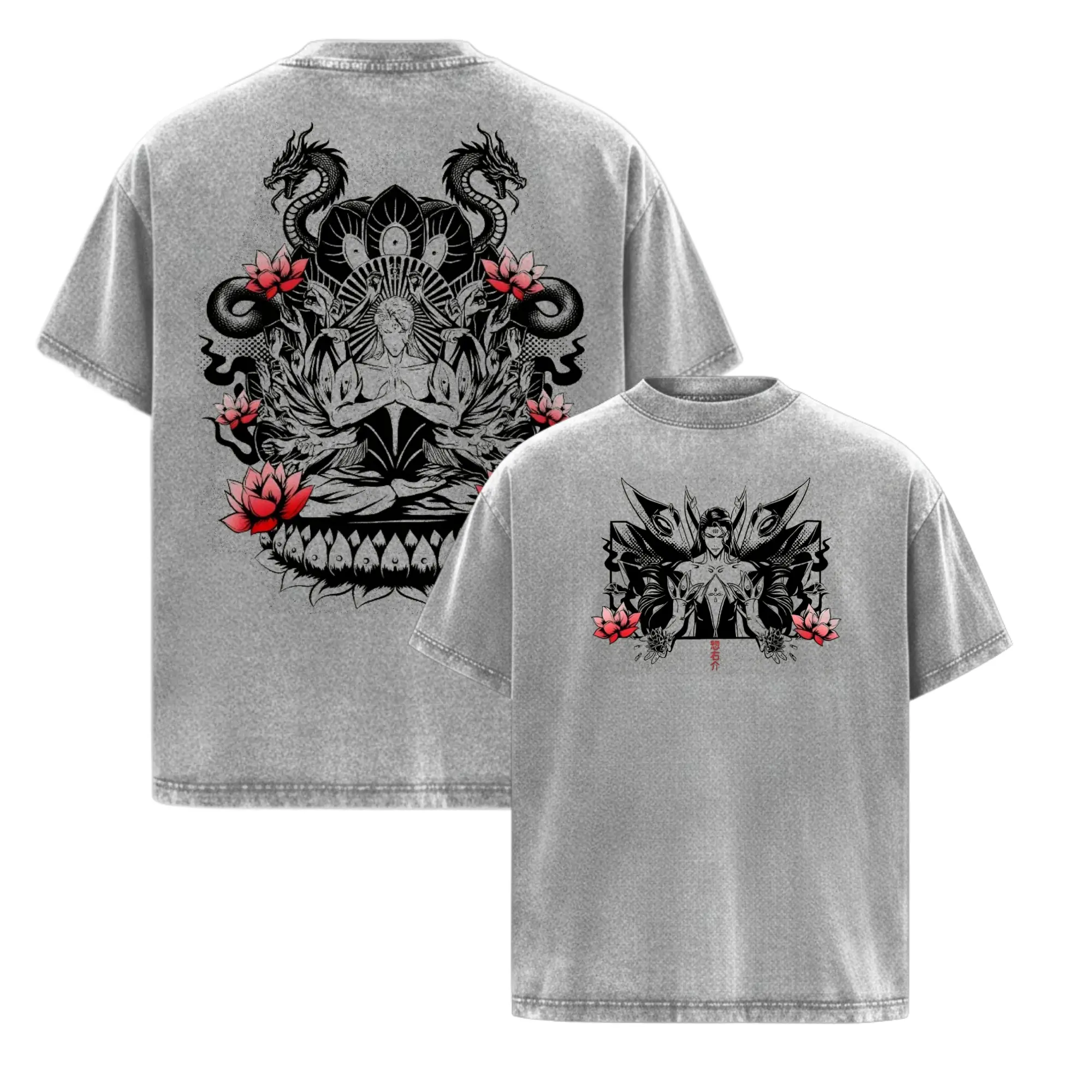Anime Manga Acid Washed 230GSM Heavyweight Cotton T Shirt