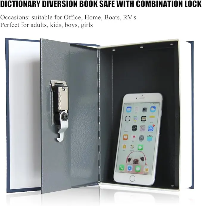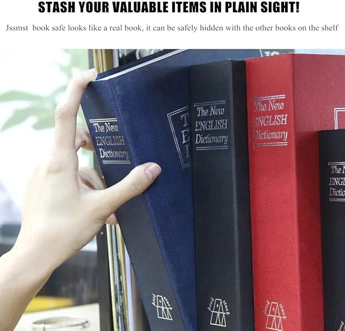 Book Design: Designed to blend seamlessly into your bookshelf or decorative display, this secret safe is camouflaged among your books, ensuring your belongings remain confidential and secure.
