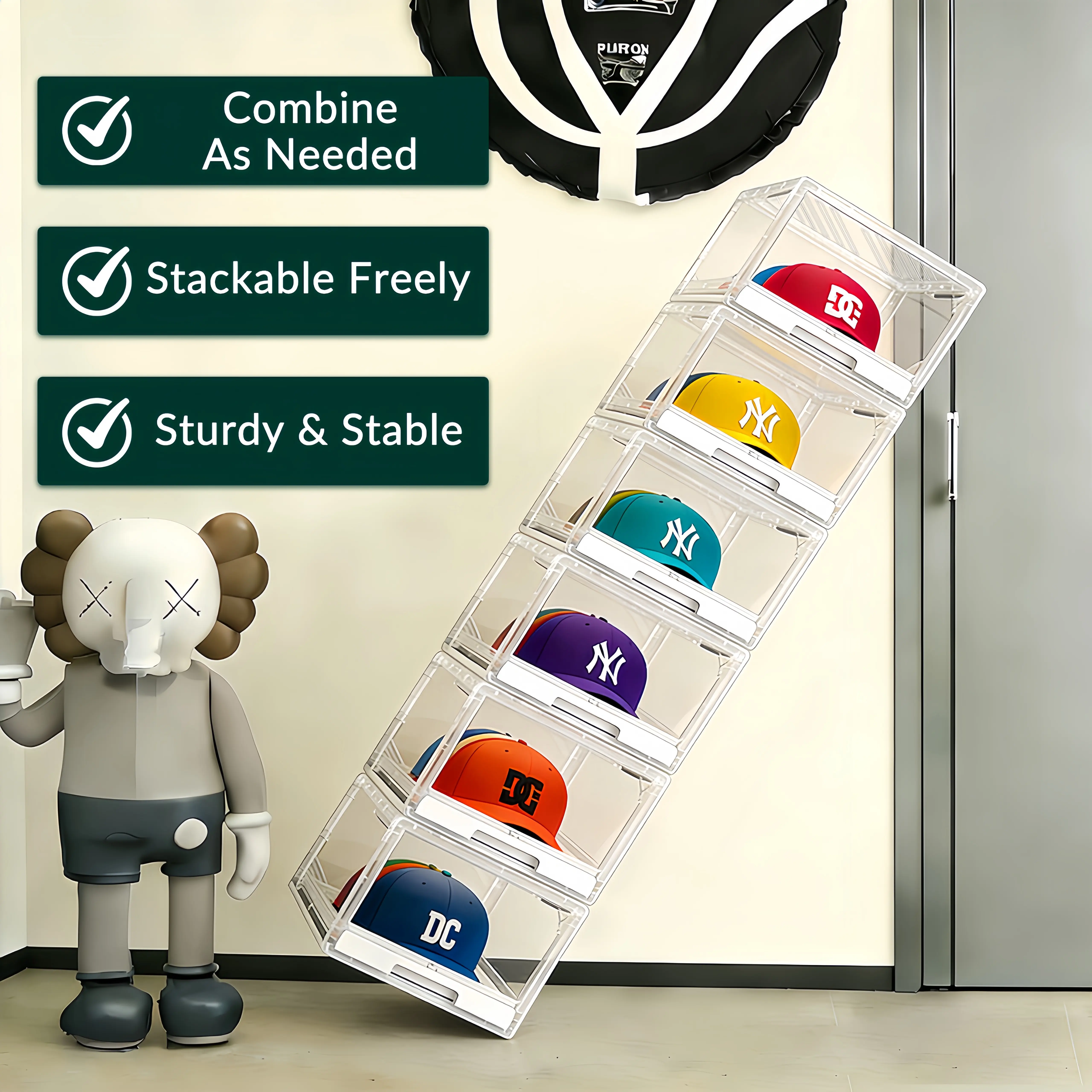 A great gift for hat collectors, sneakerheads, or anyone who loves a tidy space. Also works for high-top shoes, action figures, and small tech gadgets. Functional, modern, and display-ready—your perfect hat storage solution.