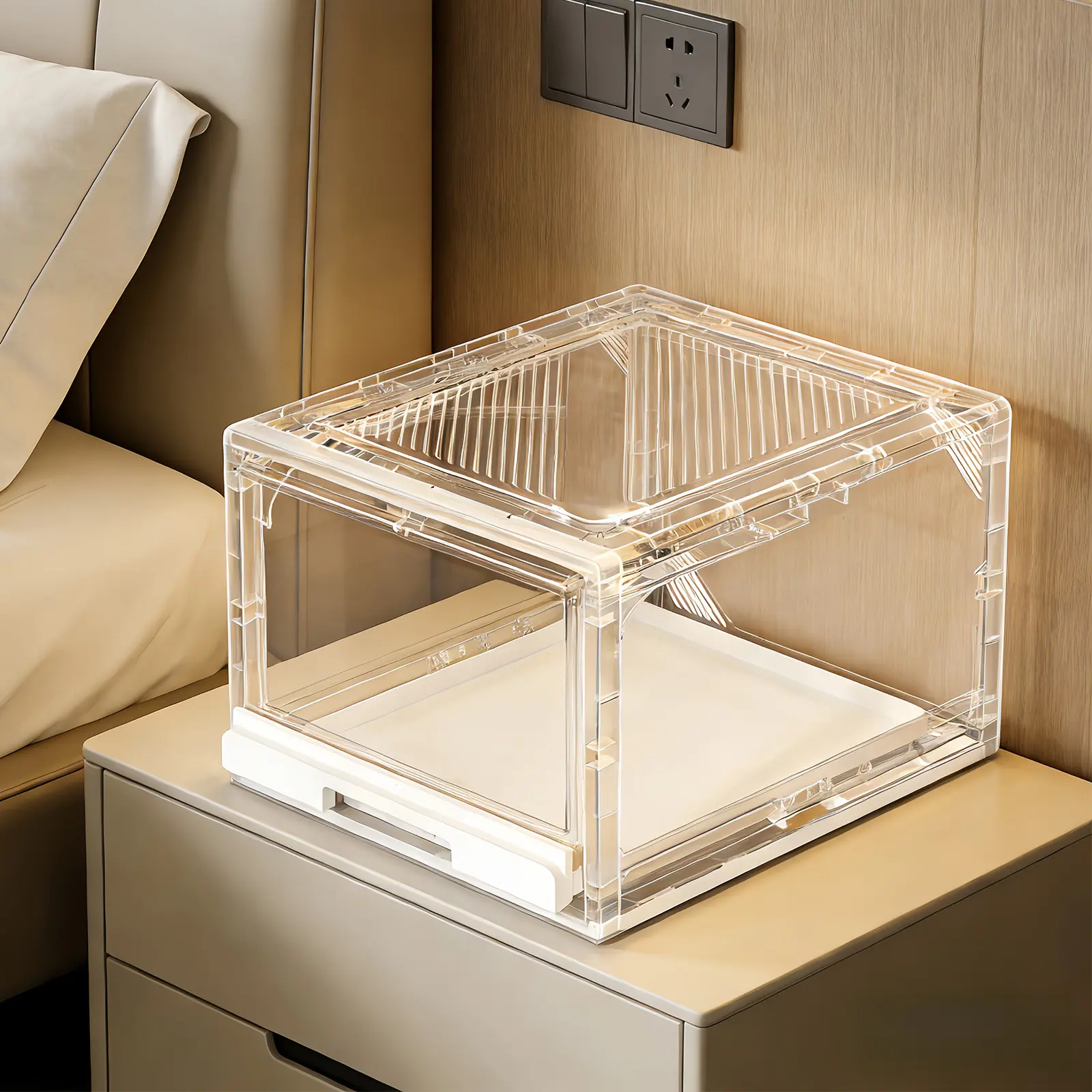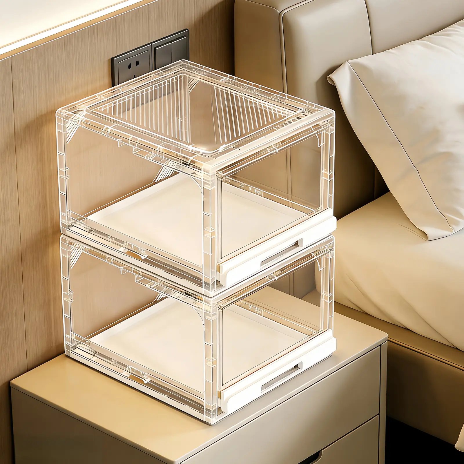 Reinforced magnetic front door allows one-handed, quick access. Boxes stack stably without damaging the bottom one. No more struggling with lids, making daily use simple while keeping hats clean.