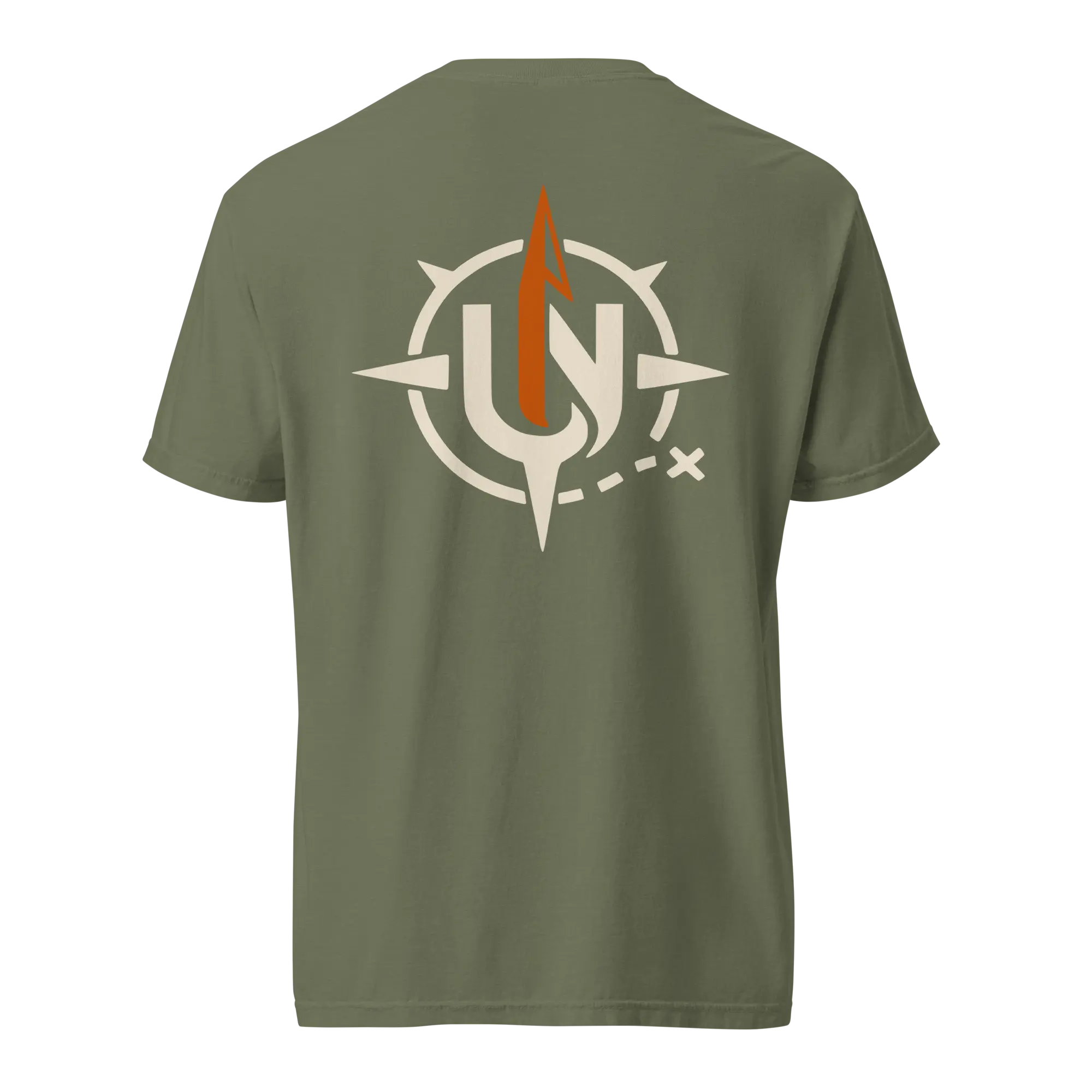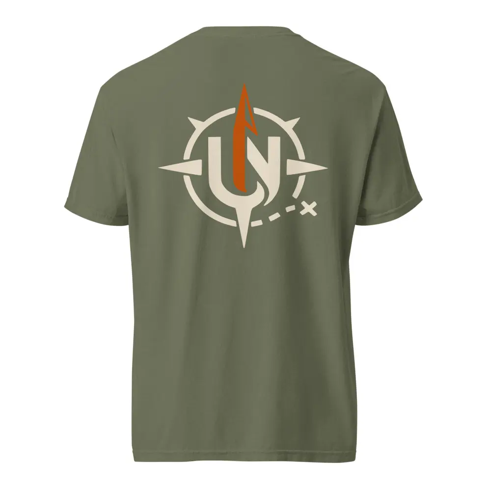 Built on the Comfort Colors 1717 garment-dyed heavyweight tee, the North Arrow Tee is made for people who move with intention. Heritage Green, relaxed fit, broken-in feel, and the Real Urban Nomad UN symbol printed on the back. Clean on the front. Quiet statement. Made for back roads, camp nights, coastal mornings, and the long way home.