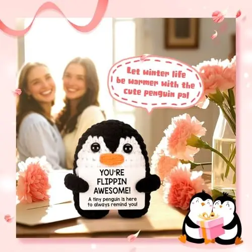 Positive Crochet Penguin, Mini Funny Inspirational Emotional Support Gift, Perfect for Galentines, Valentines Day, Birthdays & Holiday Surprises, Cute Handmade Stuffed Present for Women, Teens, Friends & Family to Bring Joy and Encouragement