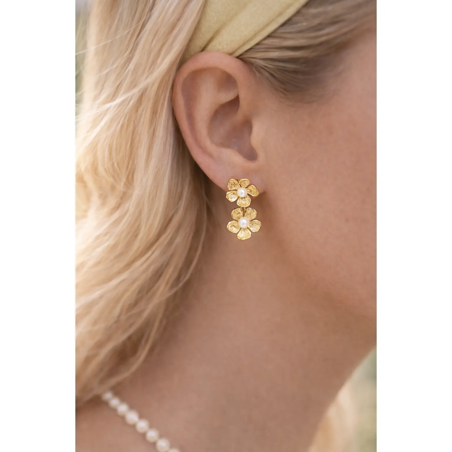Inspired by the historic beauty of Middleton Place Gardens, these floral drop earrings capture the romance of Charleston in spring. The cascading floral design and pearl accents create an elegant silhouette perfect for special occasions or garden parties.