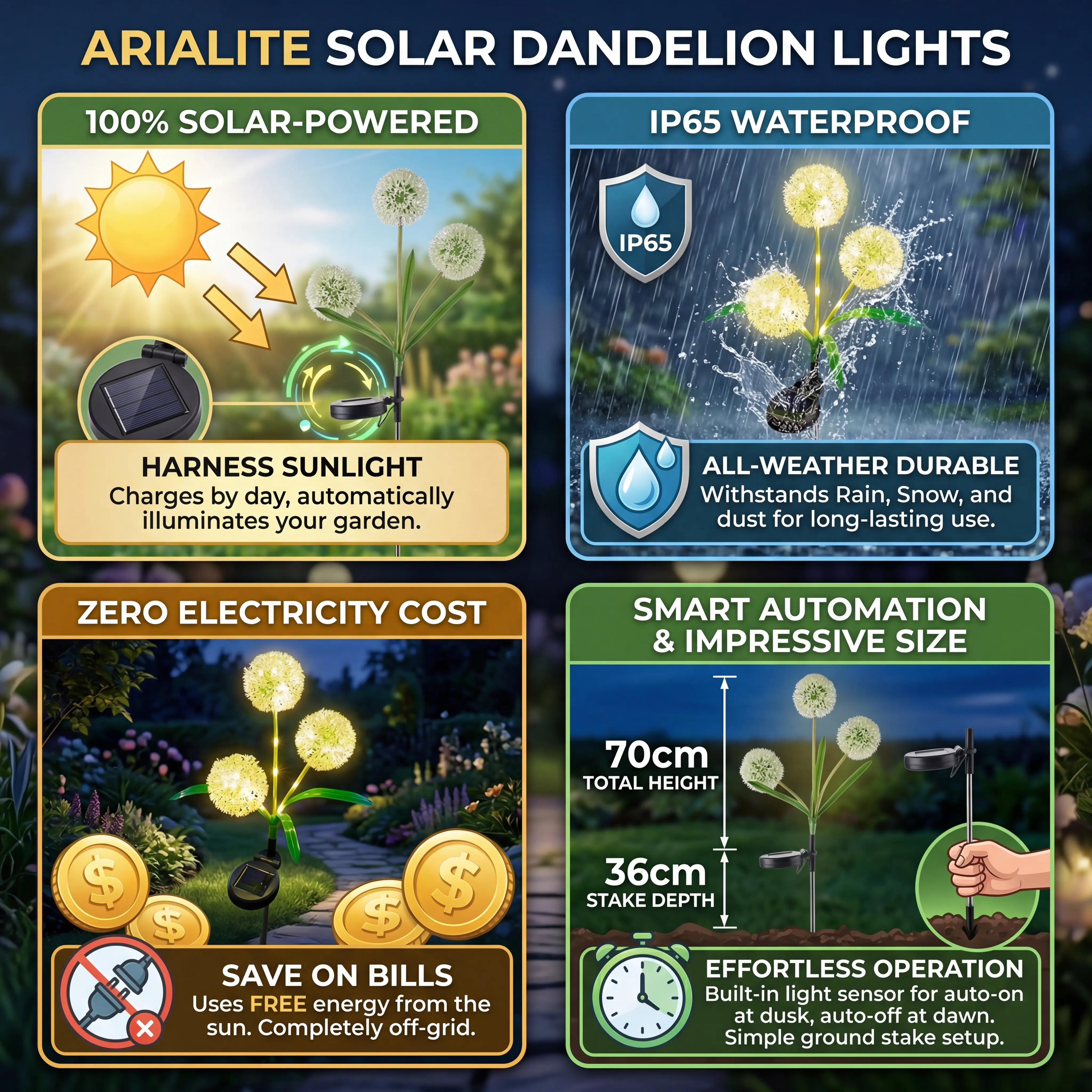 ️ 2. FAIRY GARDEN AESTHETIC & HIGHLY REALISTIC DESIGN Bring that trending "cottagecore" vibe right to your yard. Meticulously designed to mimic real dandelion or allium flowers, these 3-head glowing orbs add a breathtaking, whimsical touch to any pathway, flower bed, or patio. Beautiful art decor by day, a magical glowing oasis by night.