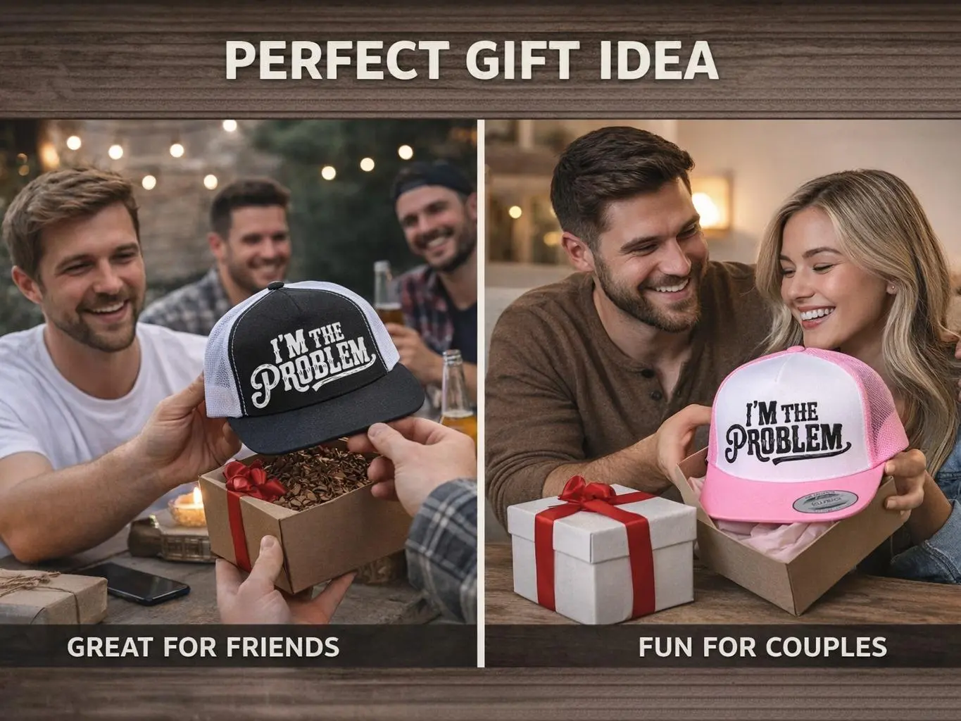 I'm The Problem Trucker Hat – Funny Snapback Hat for Men & Women, Vintage Two-Tone Baseball Cap, Adjustable Mesh Hat, Trendy Gift for Friends & Family
