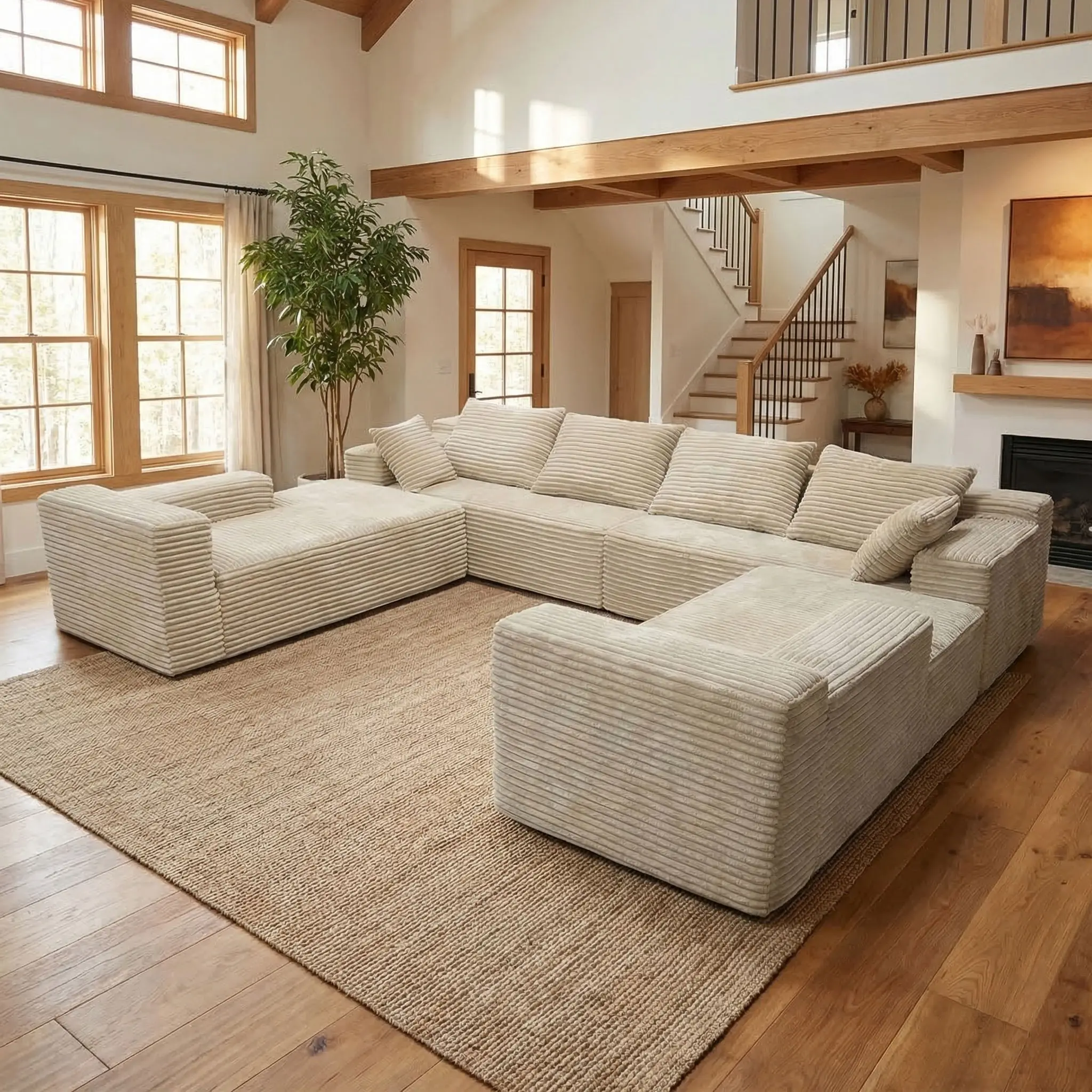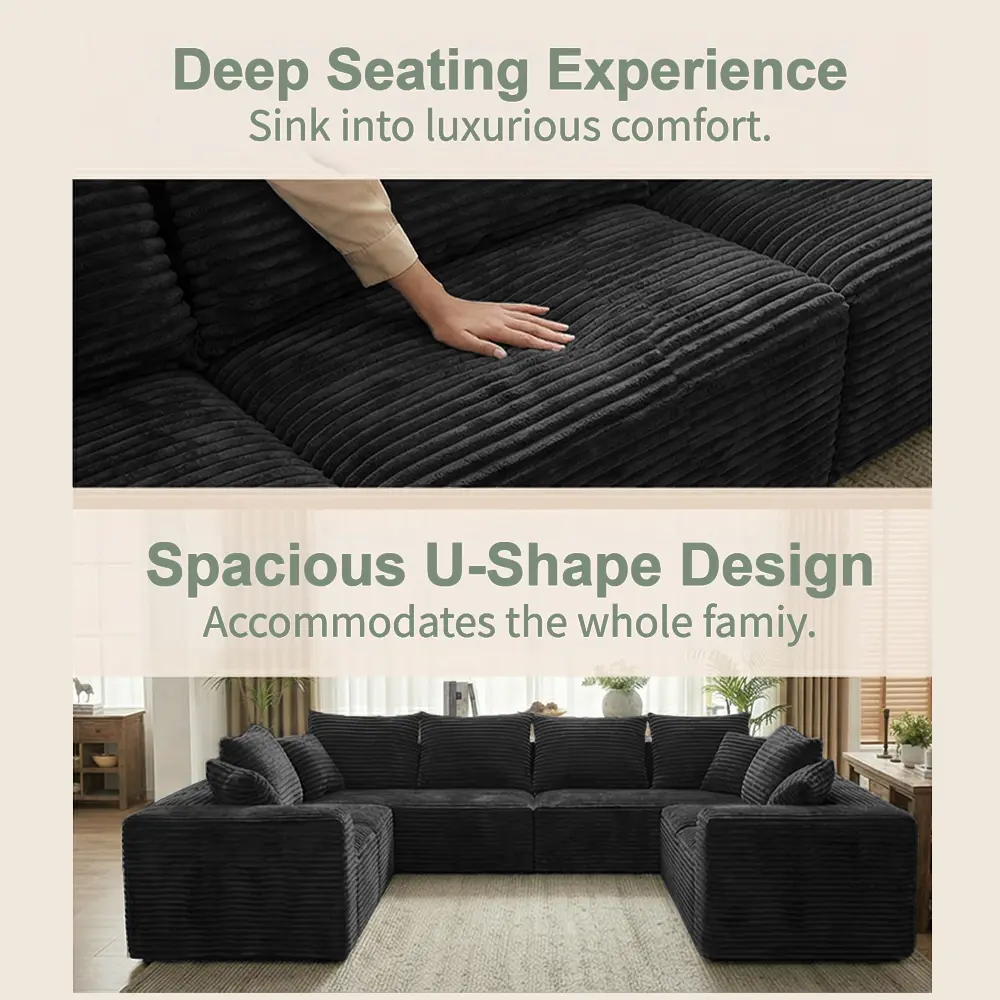 Oversized U Shaped Sectional Couches, 8 Seater Modular Boneless Cloud Sofa with Chaise Lounges, 4-in-1 Flexible Combination Deep Seat Corner Large Couch,No Assembly for Living Room