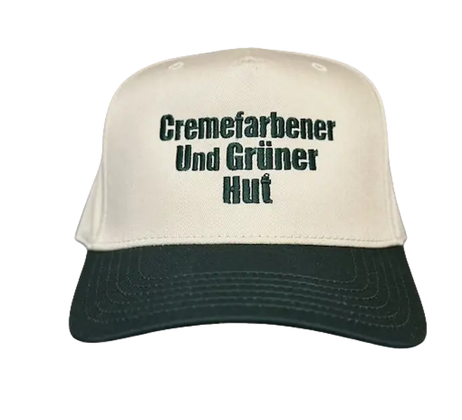 "Cremefarbener Und Grüner Hut" — German for The Cream and Green Hat. Don't worry, everyone asks.