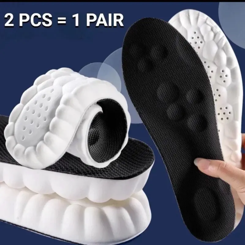 Experience enhanced daily comfort with these 4D massage sports insoles made from soft EVA material with arch support and breathable technology. Designed for everyday cushioning and foot support, they help improve comfort in various shoe types across all seasons. Suitable for unisex adult use with multiple size options.