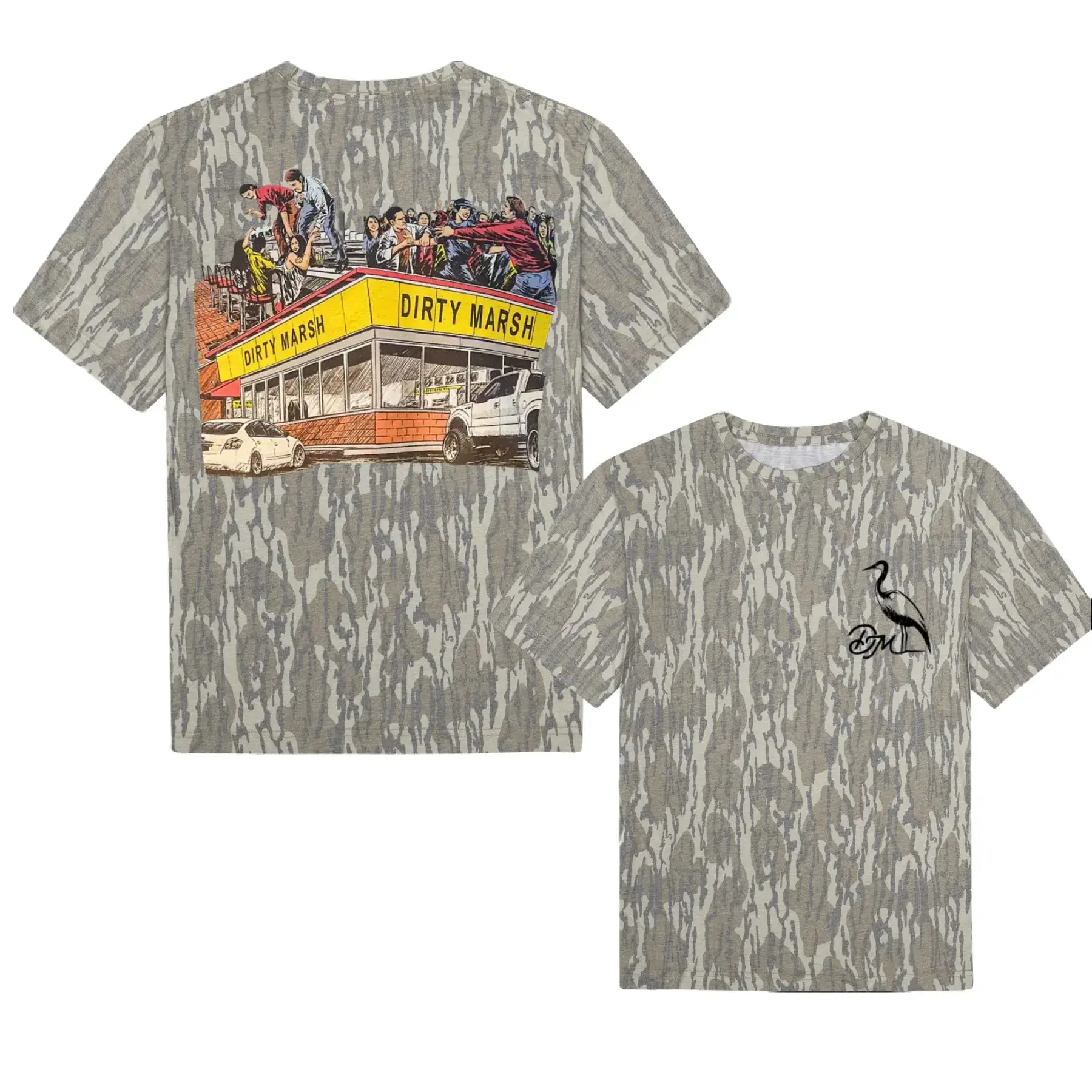 Waffle Home Tee Dirty Marsh Outfitters Backshore Bottomland Washed Out Mossy Oak Camo Cotton T Shirt, Men’s Camo Hunting Tee, Lightweight Outdoor Shirt | Deer Forest Graphic T-Shirt for Men, Gift for Fan, Father's Day, Mother's Day
