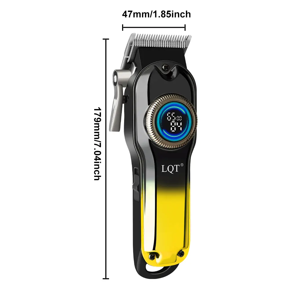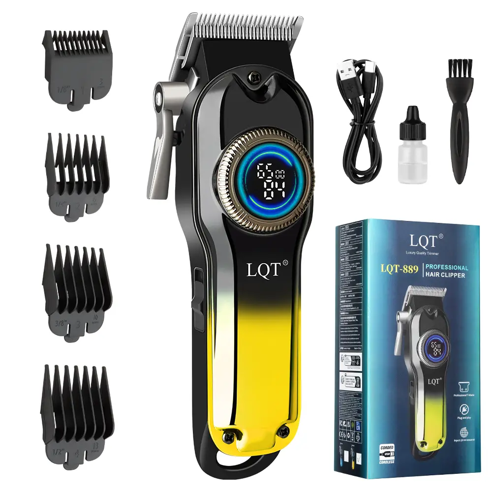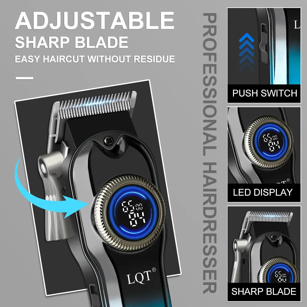 The LQT-889 is a versatile hair clipper set for men, women, and children. It features an LED display for precise trimming. The set includes a USB charging cable, cleaning brush, and guide combs. Wireless and rechargeable, it provides convenience and ease of use. Perfect for maintaining hair length and style.