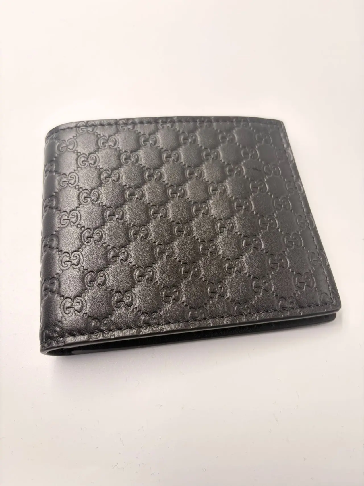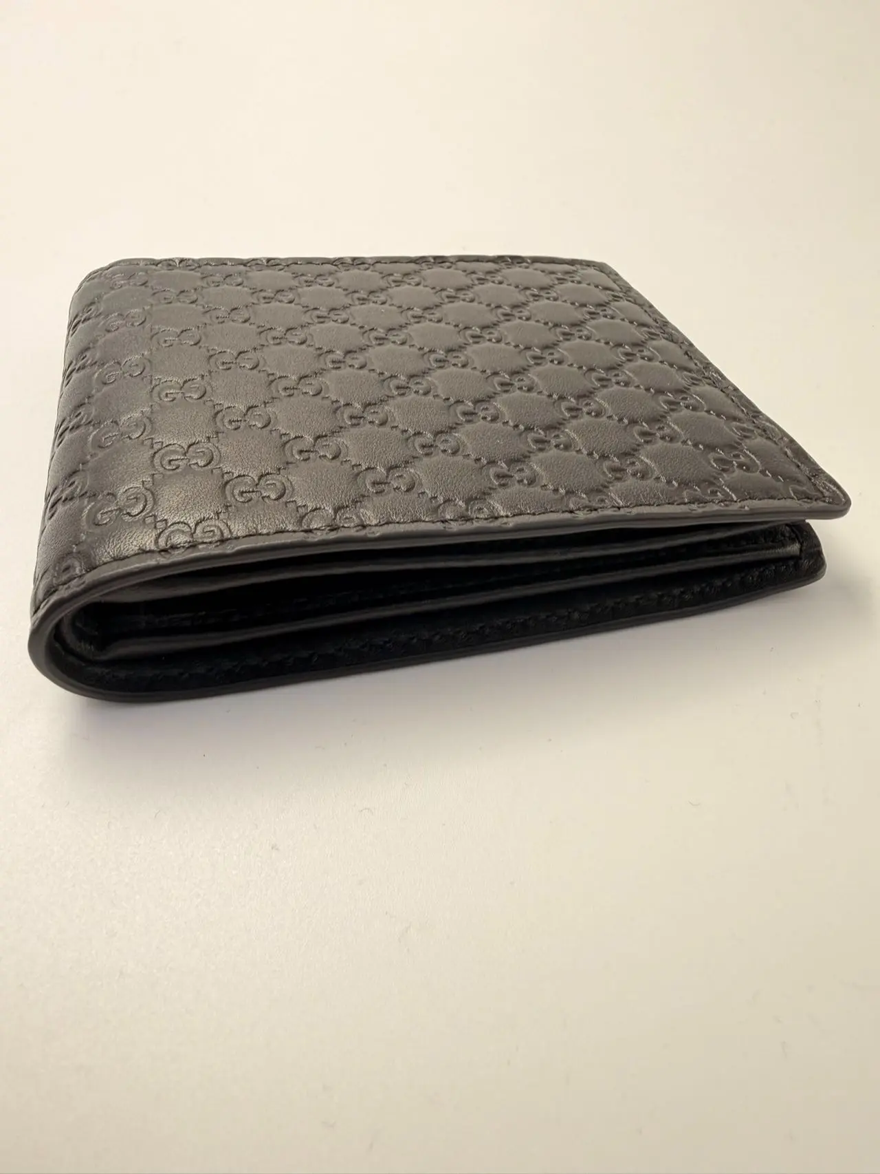 Pre-owned GUCCI LEATHER Small Leather Goods Micro Guccissima black Fold Wallet [1U]