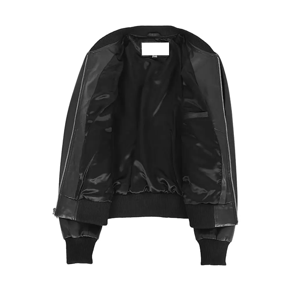 ·Elegant Design: This black leather bomber jacket by Hide Crafts features a ribbed collar and cuffs, adding a touch of sophistication. Perfect for any outfit, it combines style with functionality.