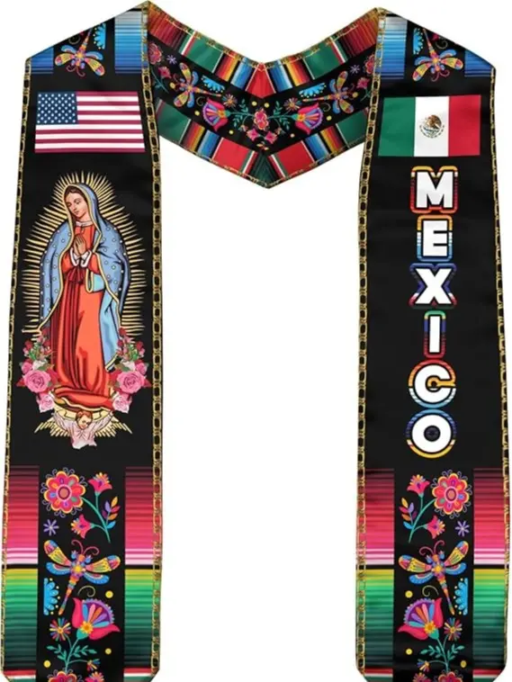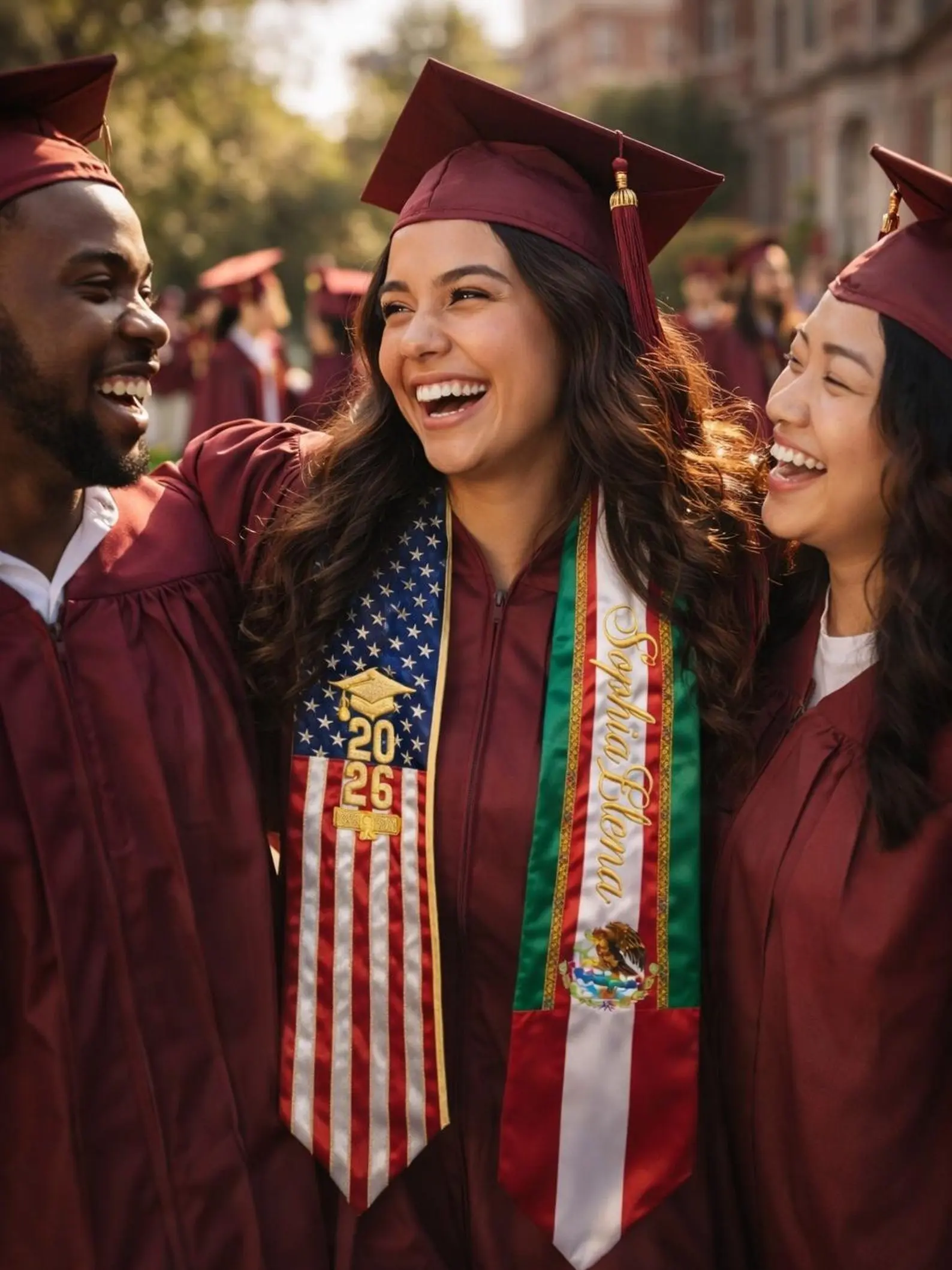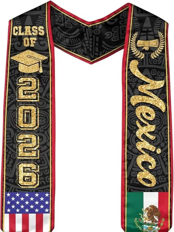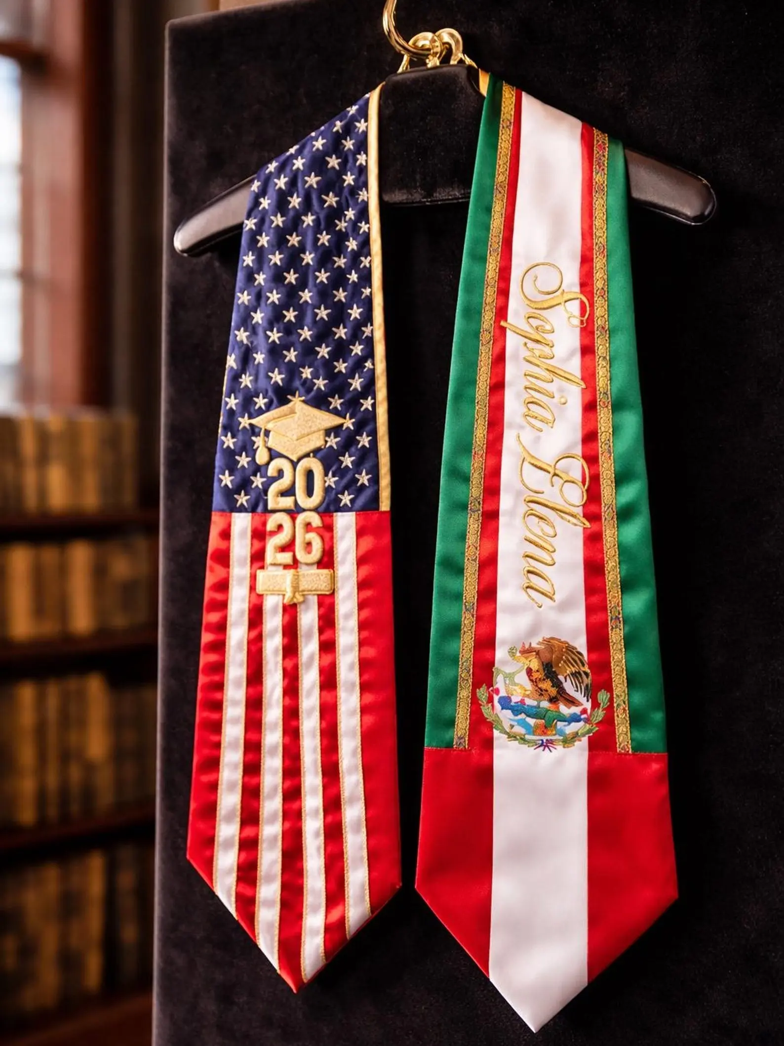 This custom senior sash is perfect for your graduation ceremony. It features your name and school year, making it a unique keepsake. The dual flag design adds a cultural touch, symbolizing your class. Ideal for ceremonies, this stole is a meaningful gift.