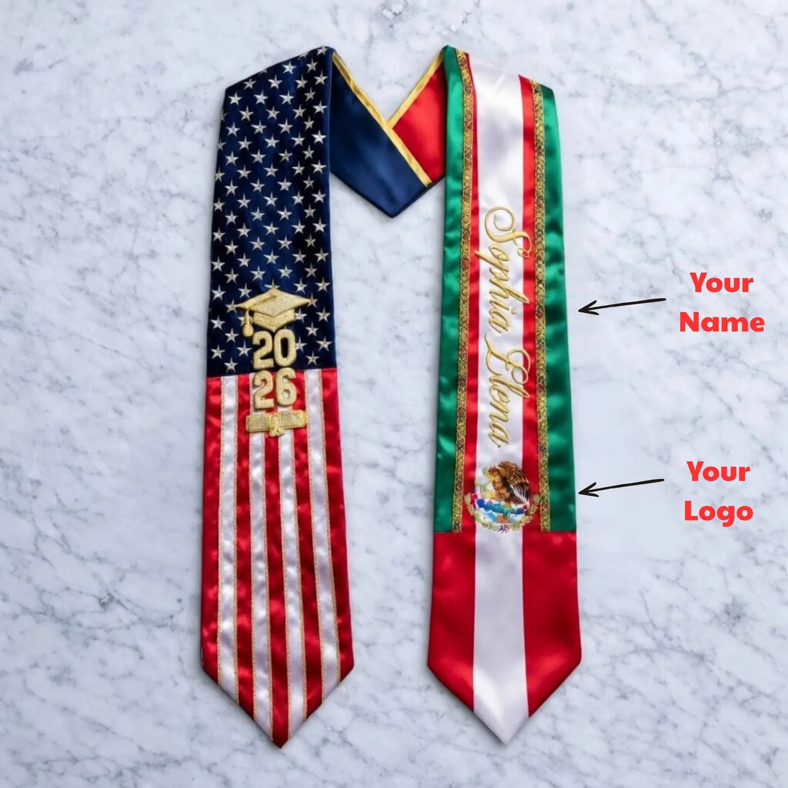 Graduation Stole Personalized Dual Flag, Custom Senior Sash with Name School Year, Cultural Class of Stole Gift for Ceremony