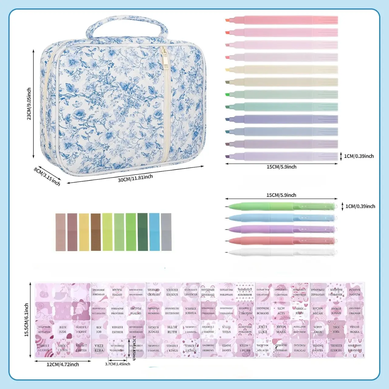 ·Complete Bible Study Set: This all-in-one Bible study kit includes a women’s Bible cover with a beautiful blue floral design, 5 ballpoint pens, 12 assorted color markers, 72 index tabs, and 200 sticky notes in 10 colors. The variety of writing tools allows for color-coded notes, while the tabs and sticky notes help you easily organize and highlight important passages.