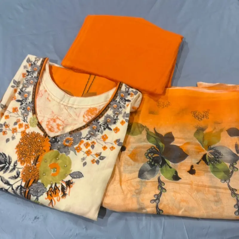 Orange and Yellow Salwar Kameez High Quality Cotton Bangladeshi Pakistani Indian Suit with Floral Embroidery