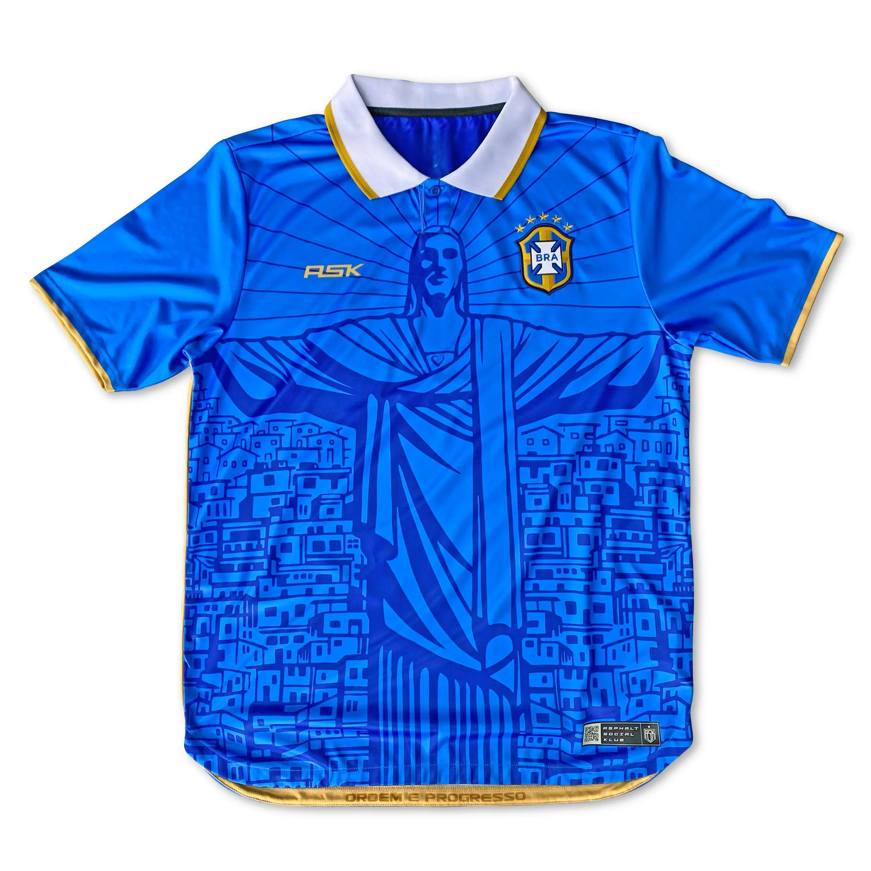 Unique Redeemer Design: Combining the Christ the Redeemer statue with retro football style