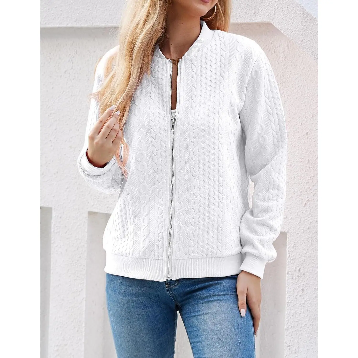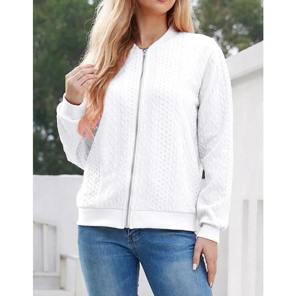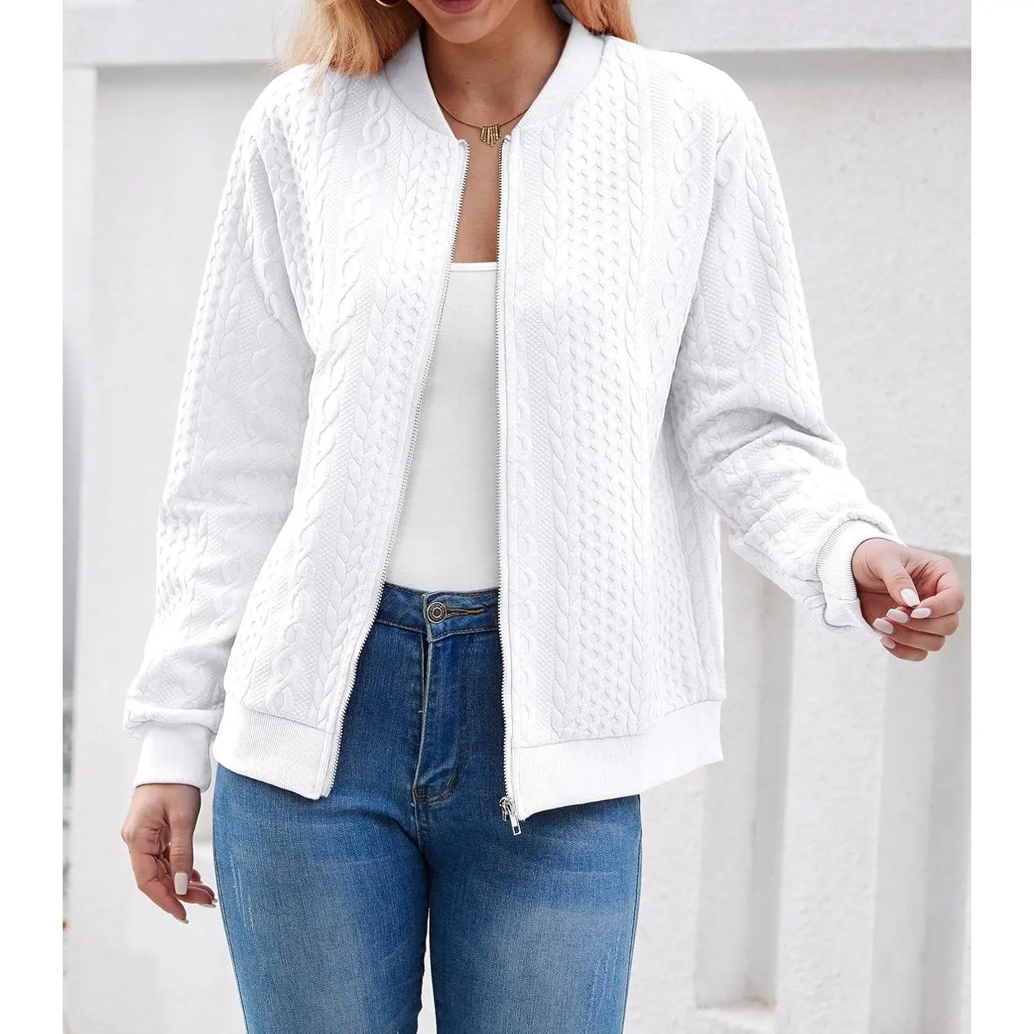 Full Zip Up Cute Cable Knit Cardigan Women Long Sleeve Knit Jacket