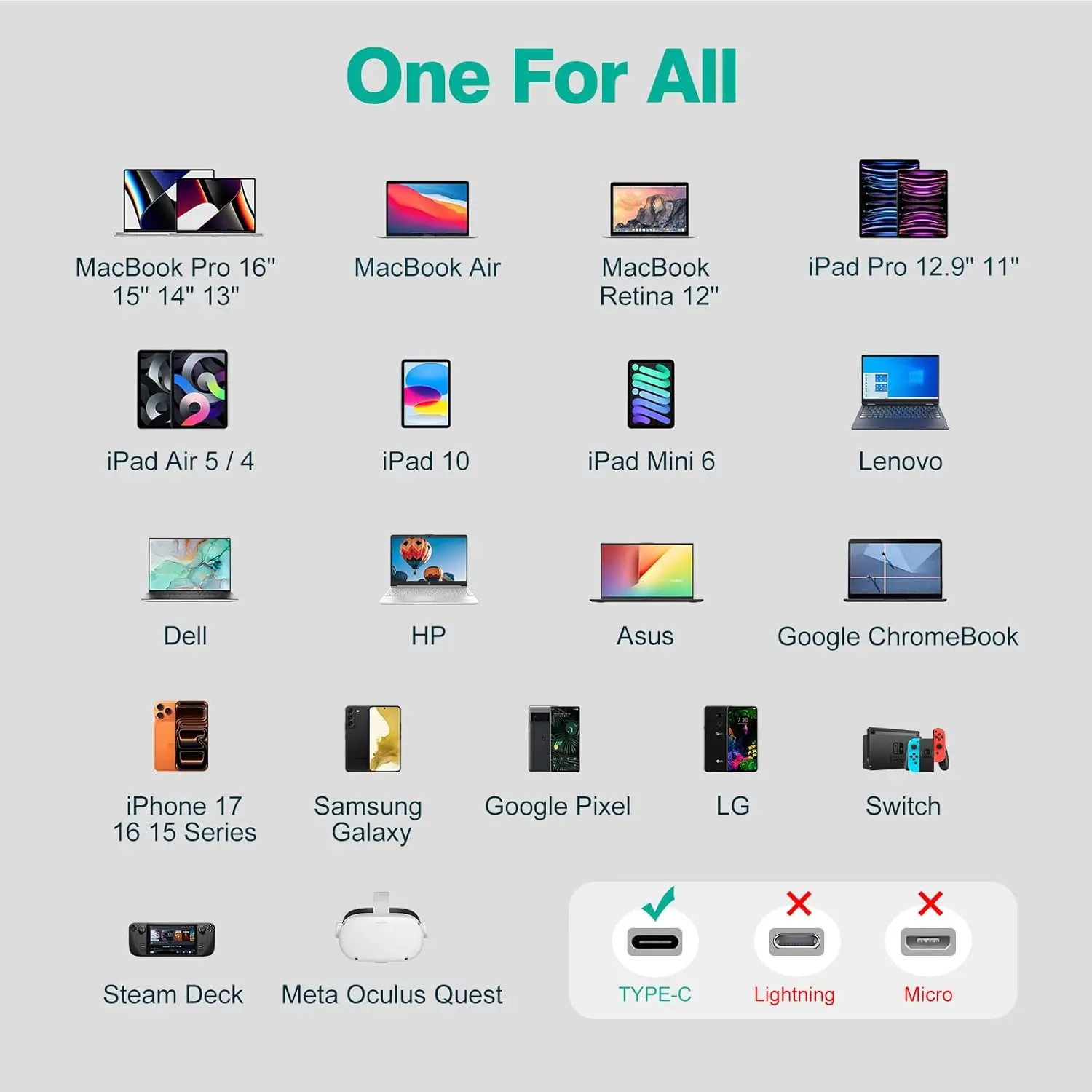 ·USB C to USB C: Ensures compatibility with a wide range of devices.