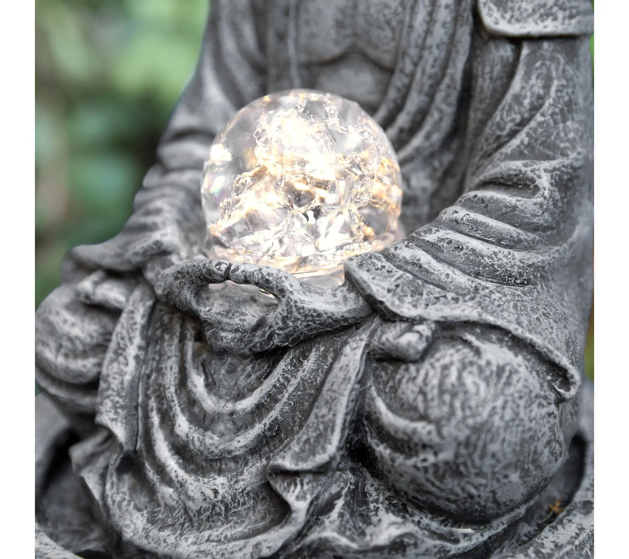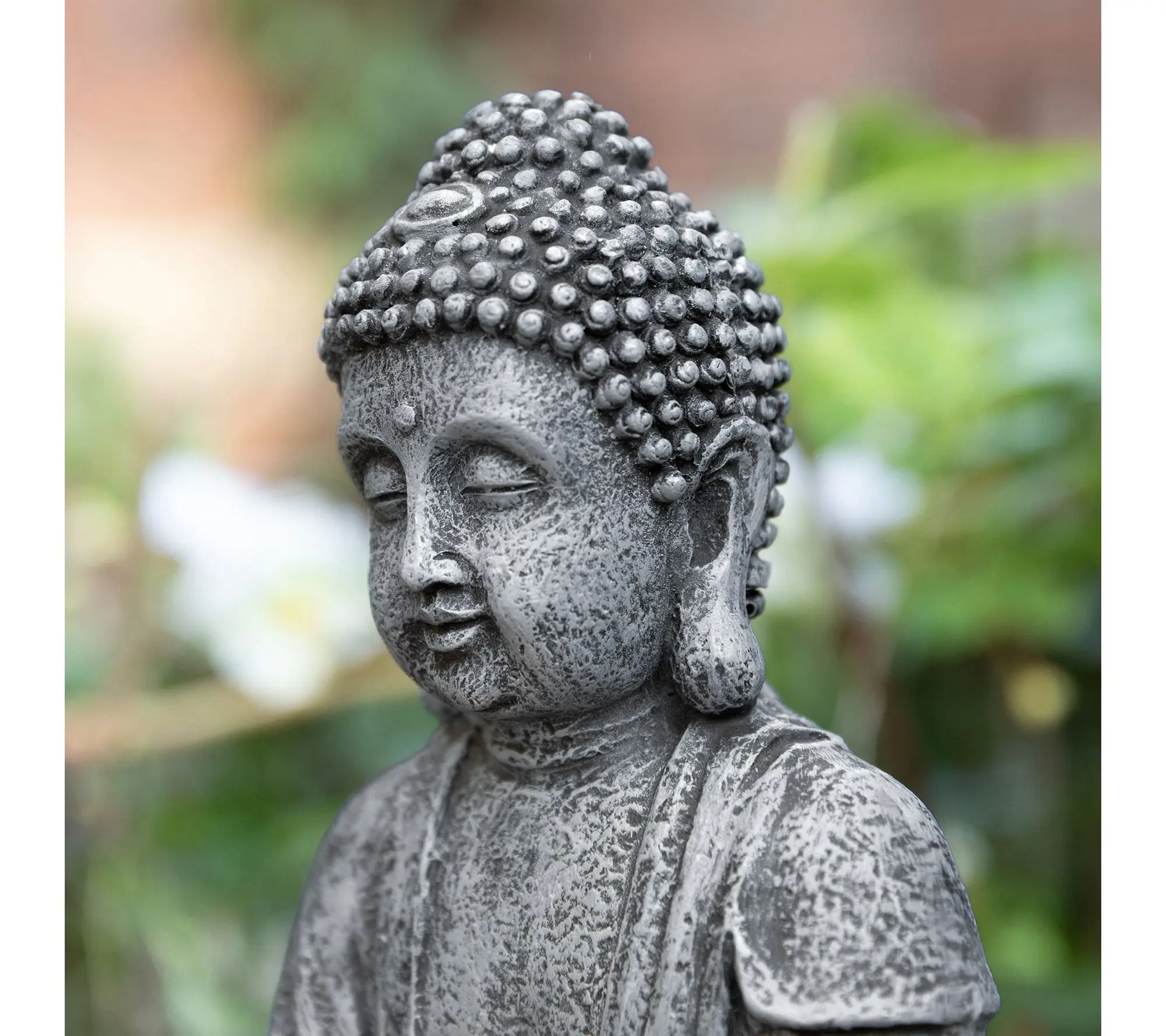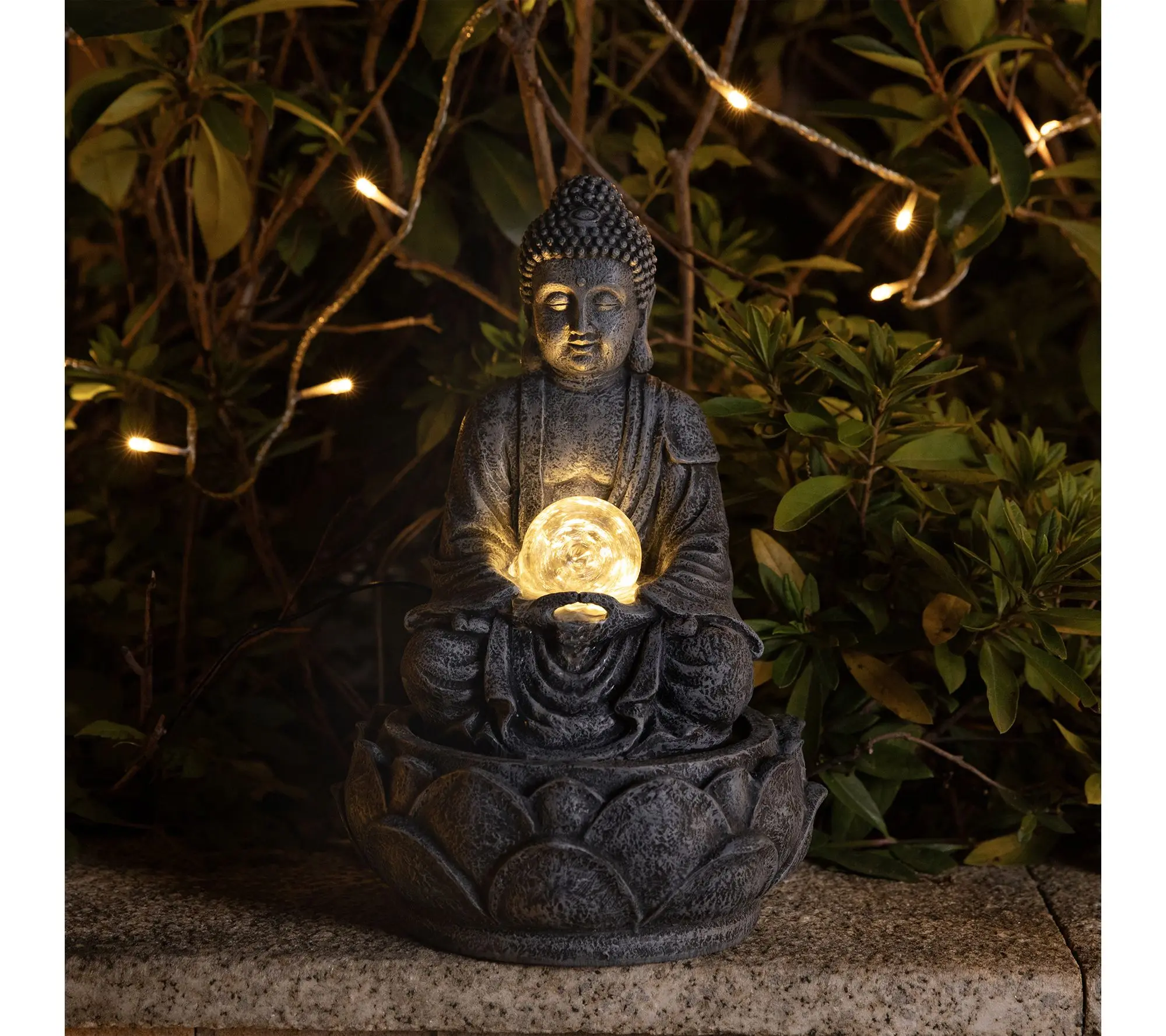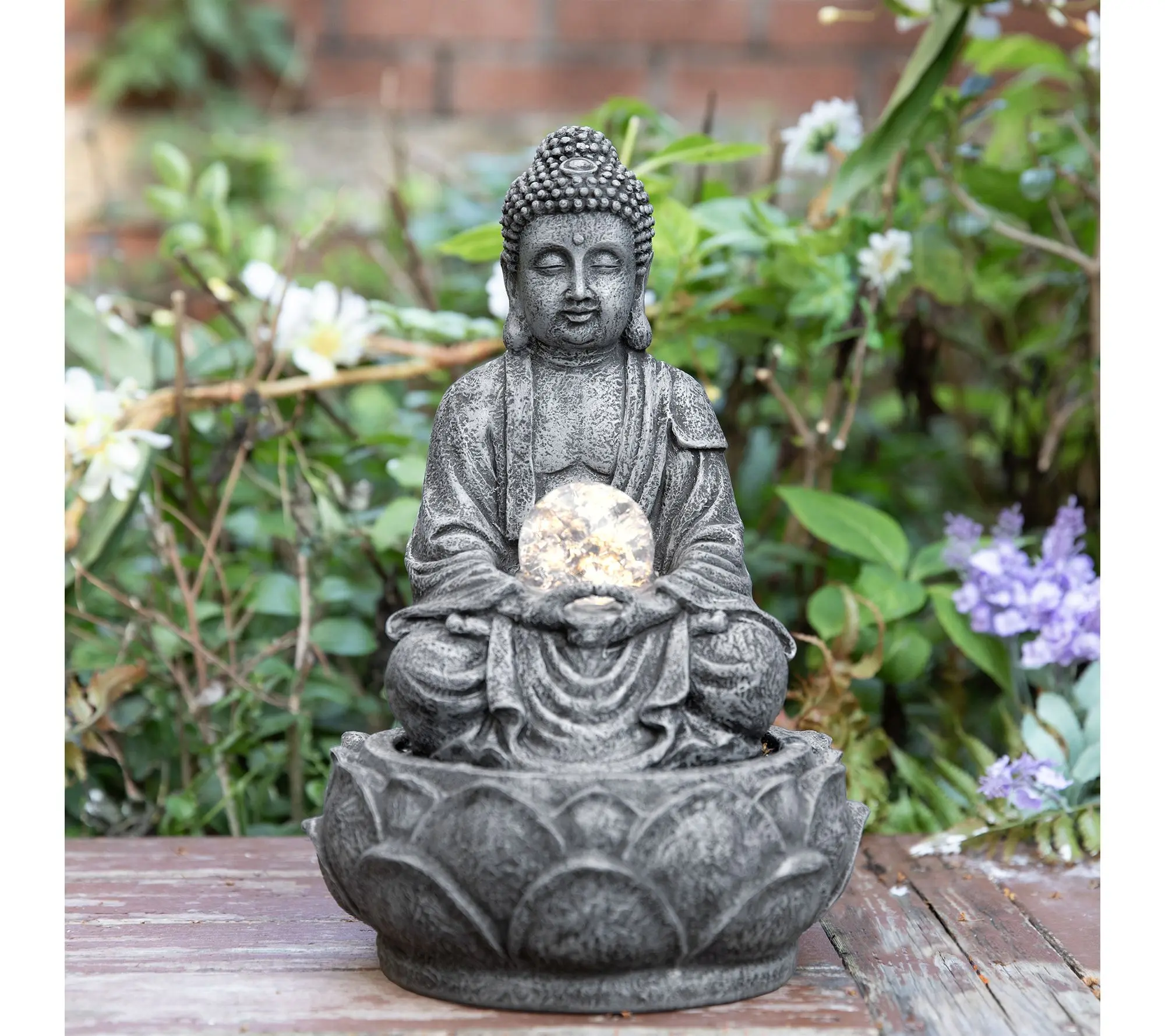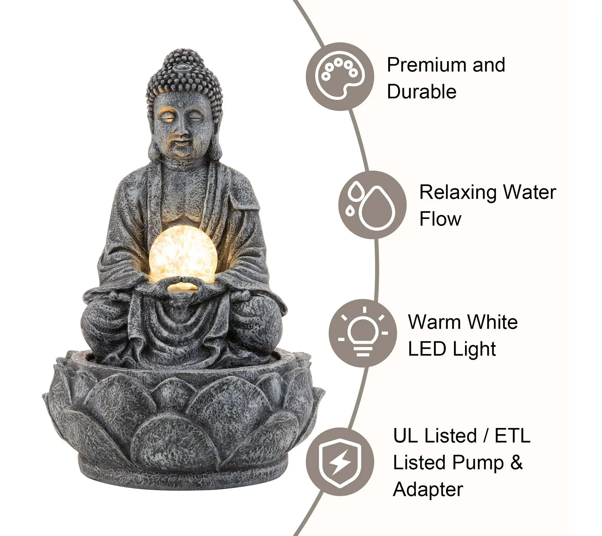 ·Zen-style polyresin table fountain with sculptural Buddha-inspired design