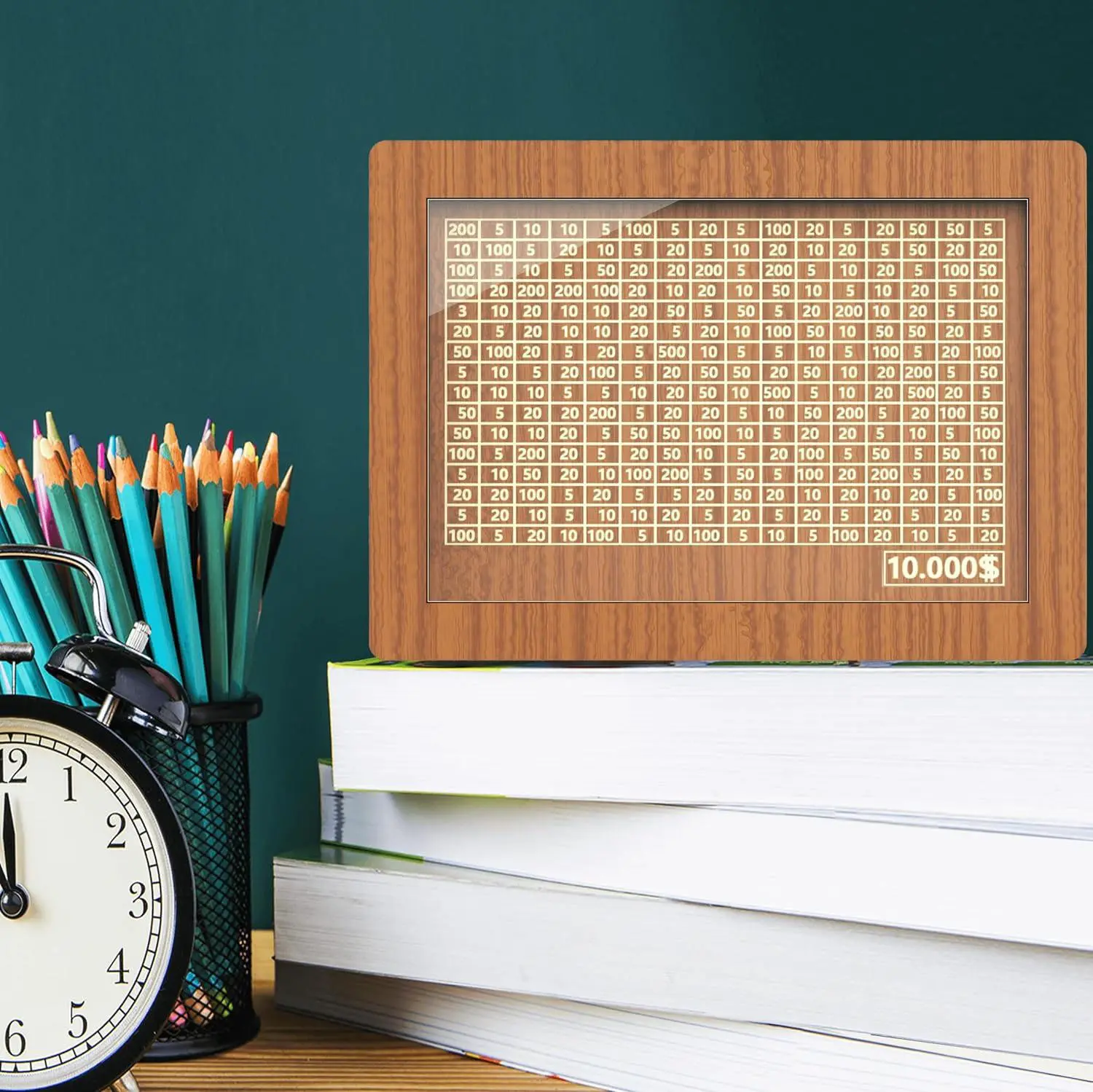Cash Vault Wooden Savings Box, Wooden Cash Saver Money Box, Wooden Piggy Bank Coin Bank with Counting Target, Best Gift for Friends, Wooden Coin Bank for Boys and Girls, Adults (Brown, 10000$)