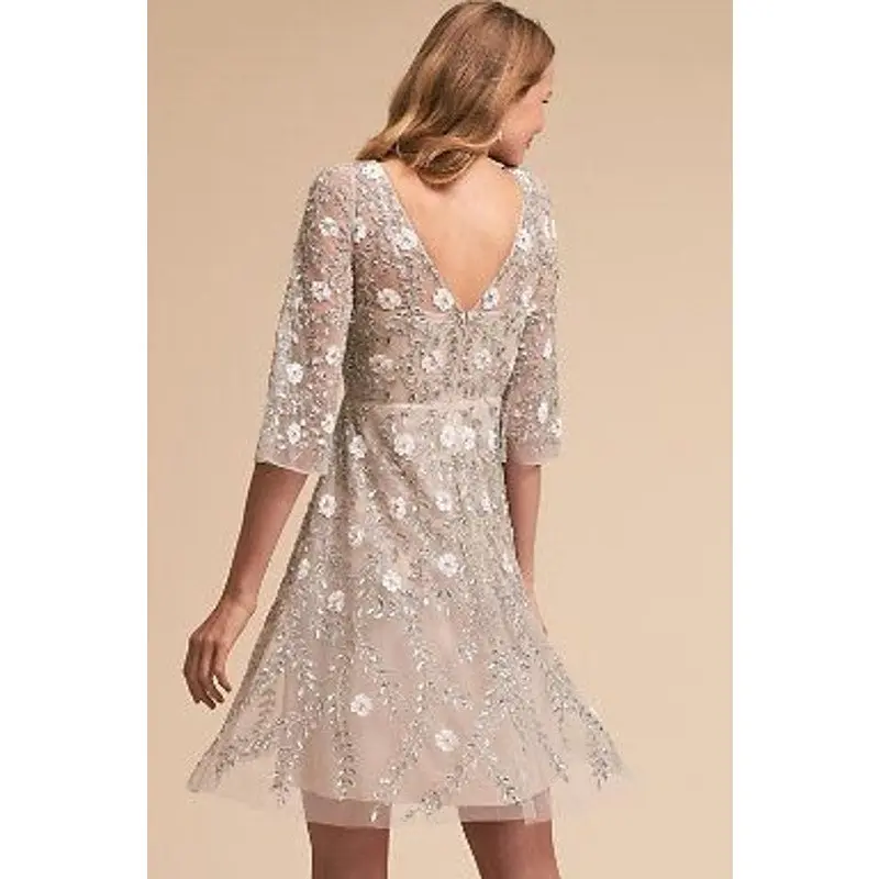 Anthropologie BHLDN Aidan Mattox Sun Valley Dress SIZE 4 Silver Floral