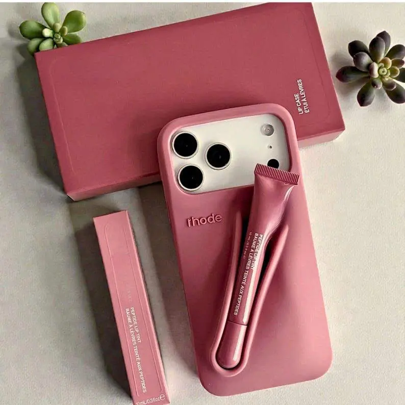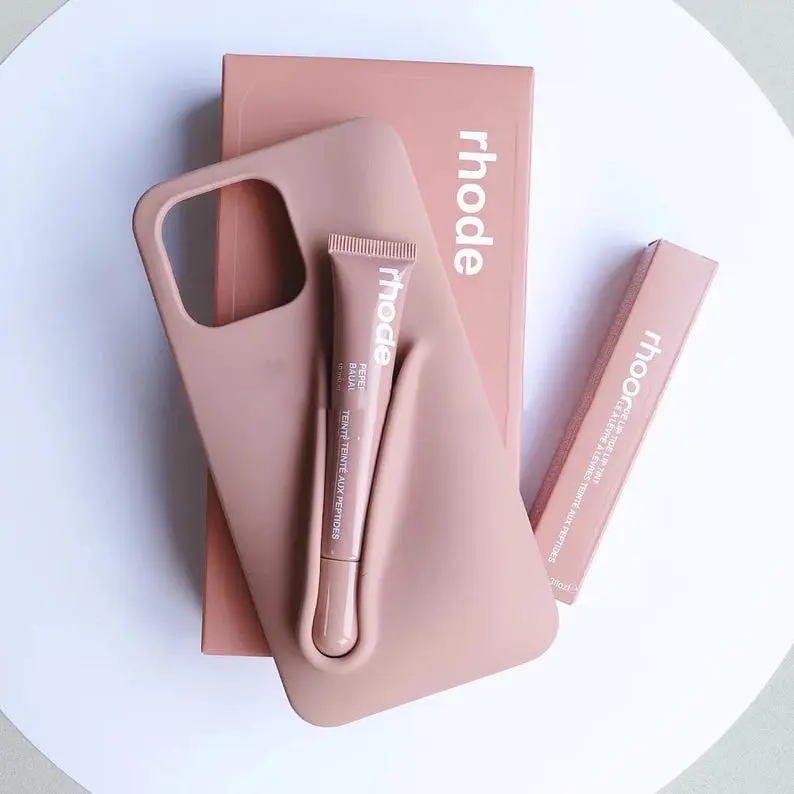 5. For iPhone 16 12 13 14 15 11 Pro Max Plus 17 Fashion Rhode Phone Case Gray Toast Espresso Ribbon Lip Gloss Holder Silicone Cover