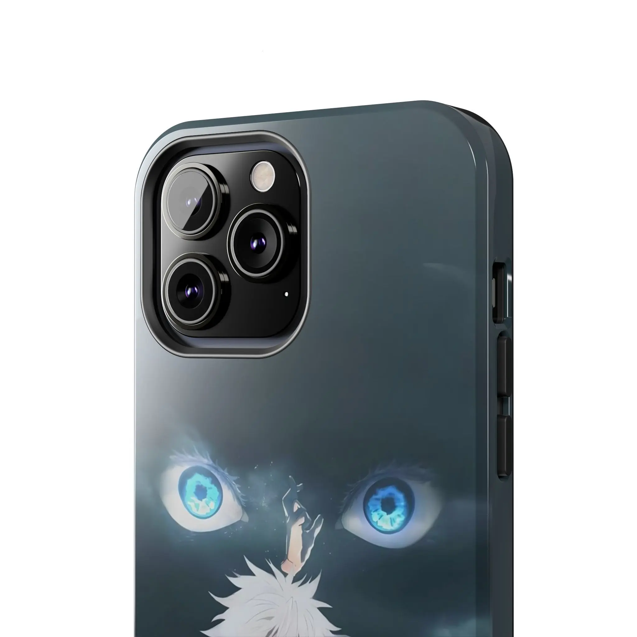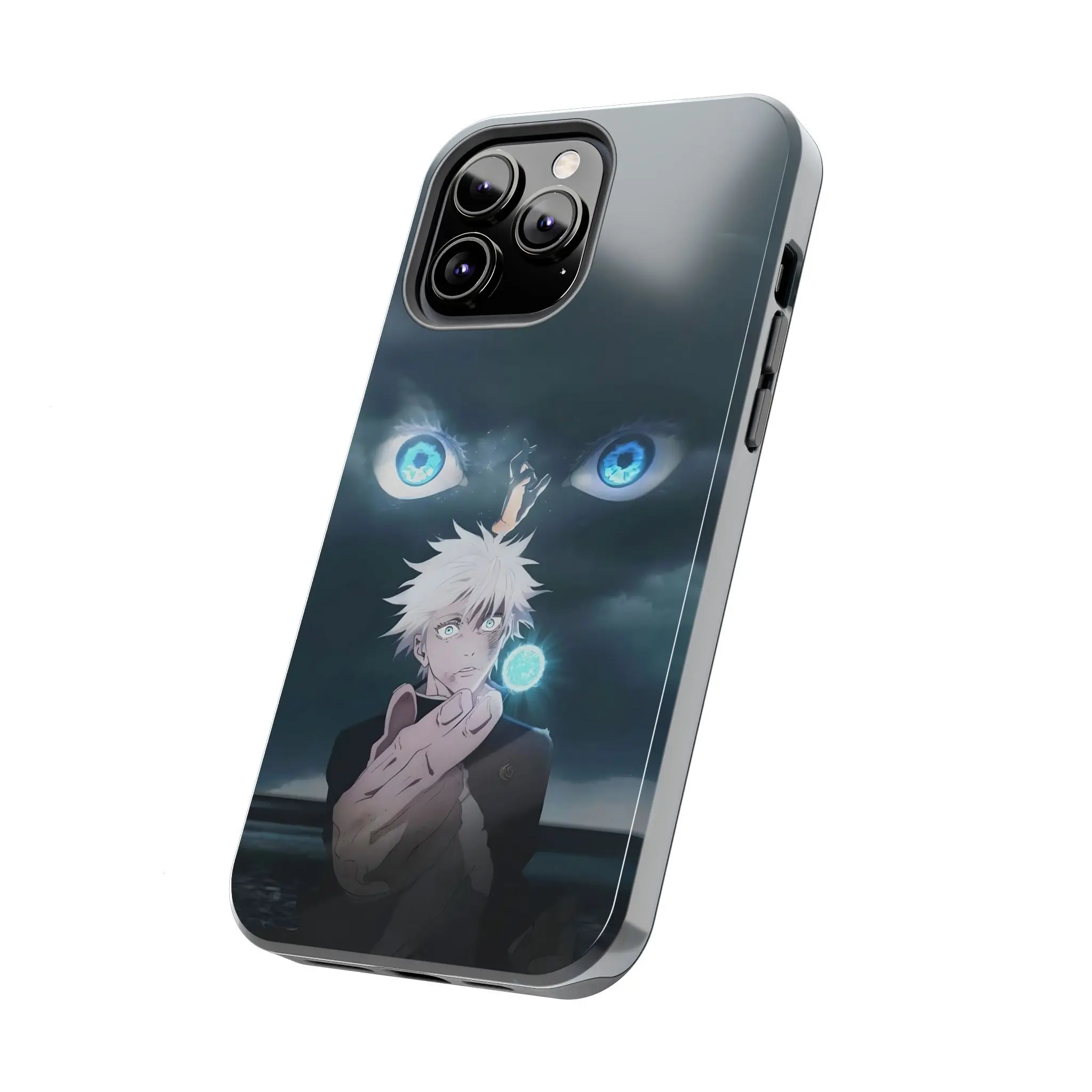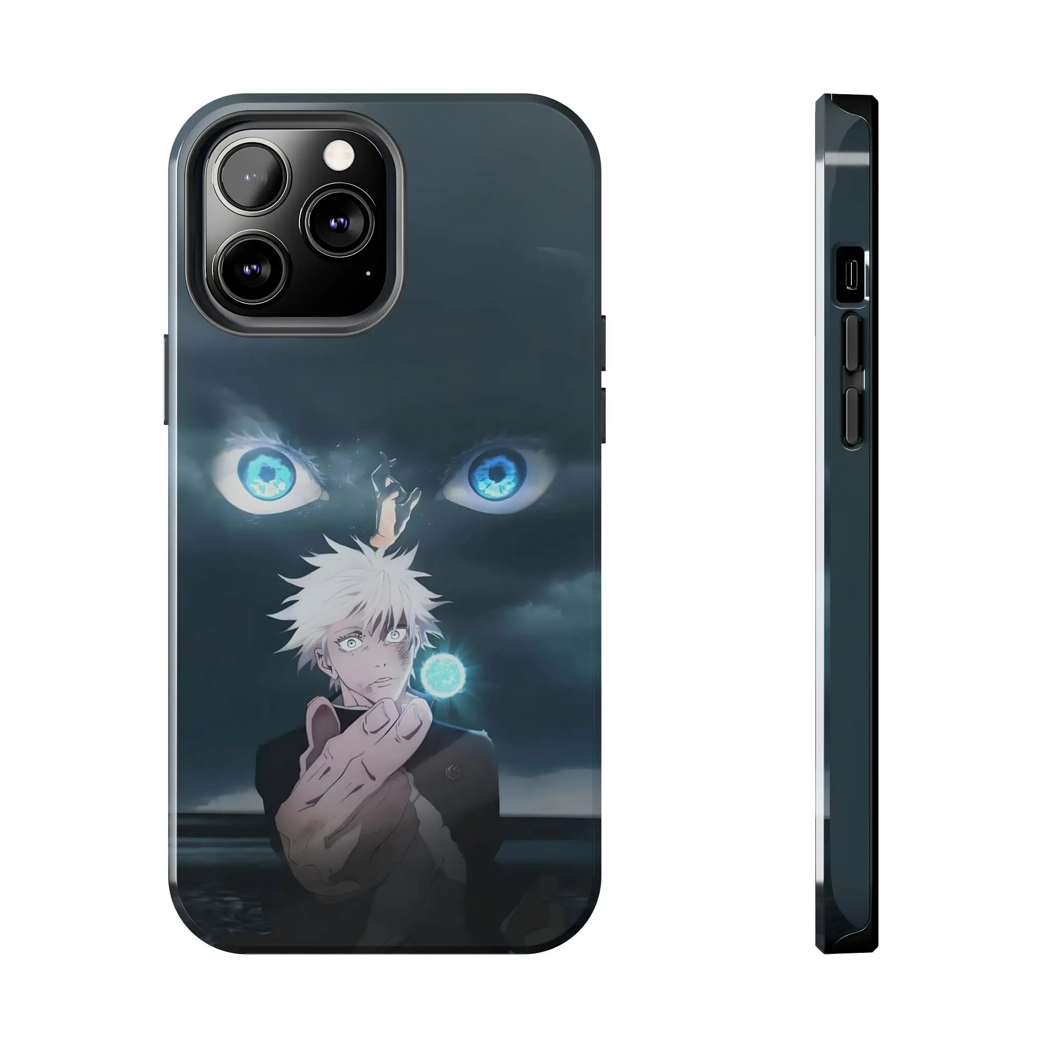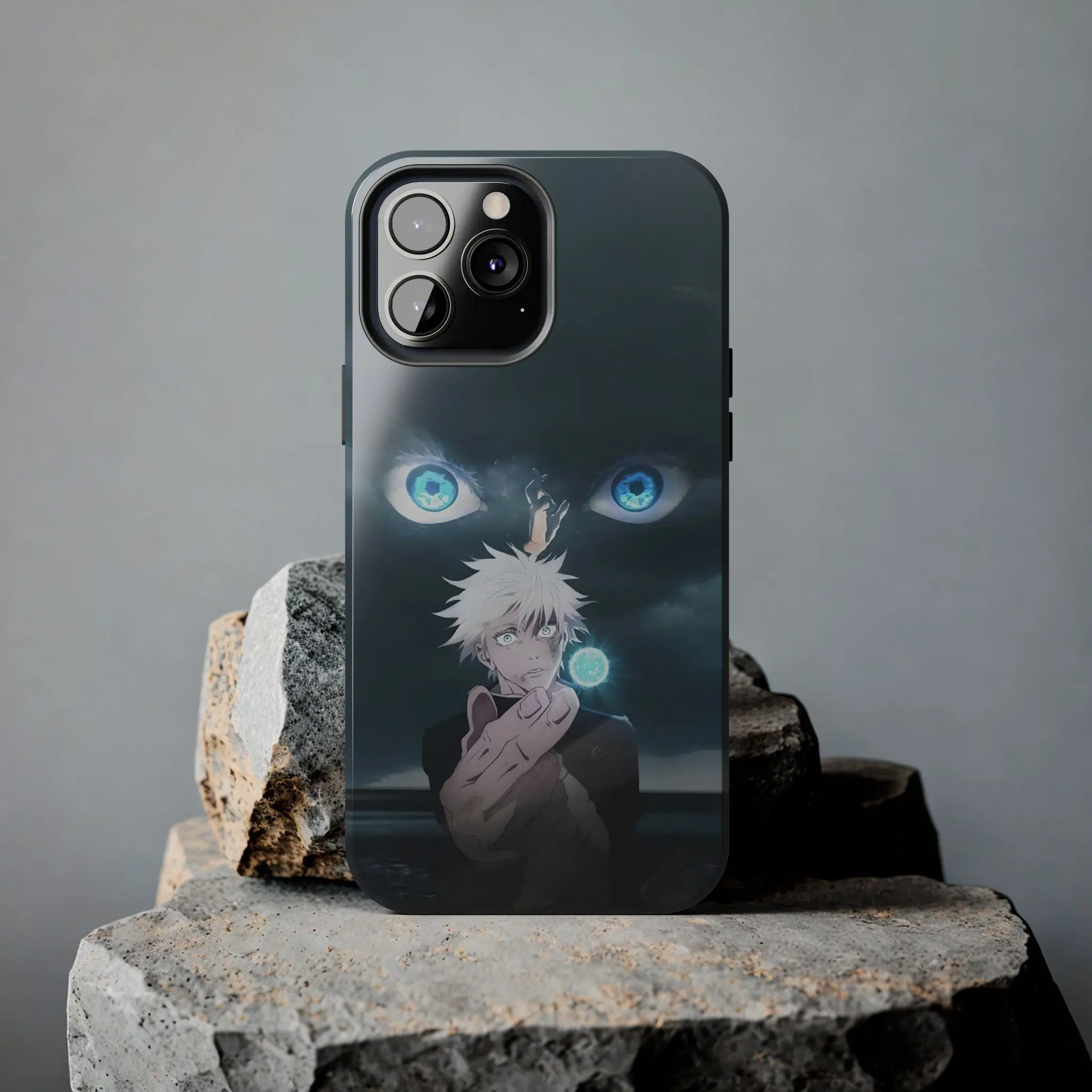 Domain Expansion! Bring the overwhelming power of the strongest sorcerer to your phone with this Gojo Satoru "Jujutsu Kaisen" themed case. Featuring a cinematic composition that highlights Gojo’s piercing "Six Eyes" in the background and his iconic hand signs in the foreground, this design captures the moment of Absolute Infinity. The deep blue tones and ethereal glow make this the ultimate accessory for any JJK fan.
