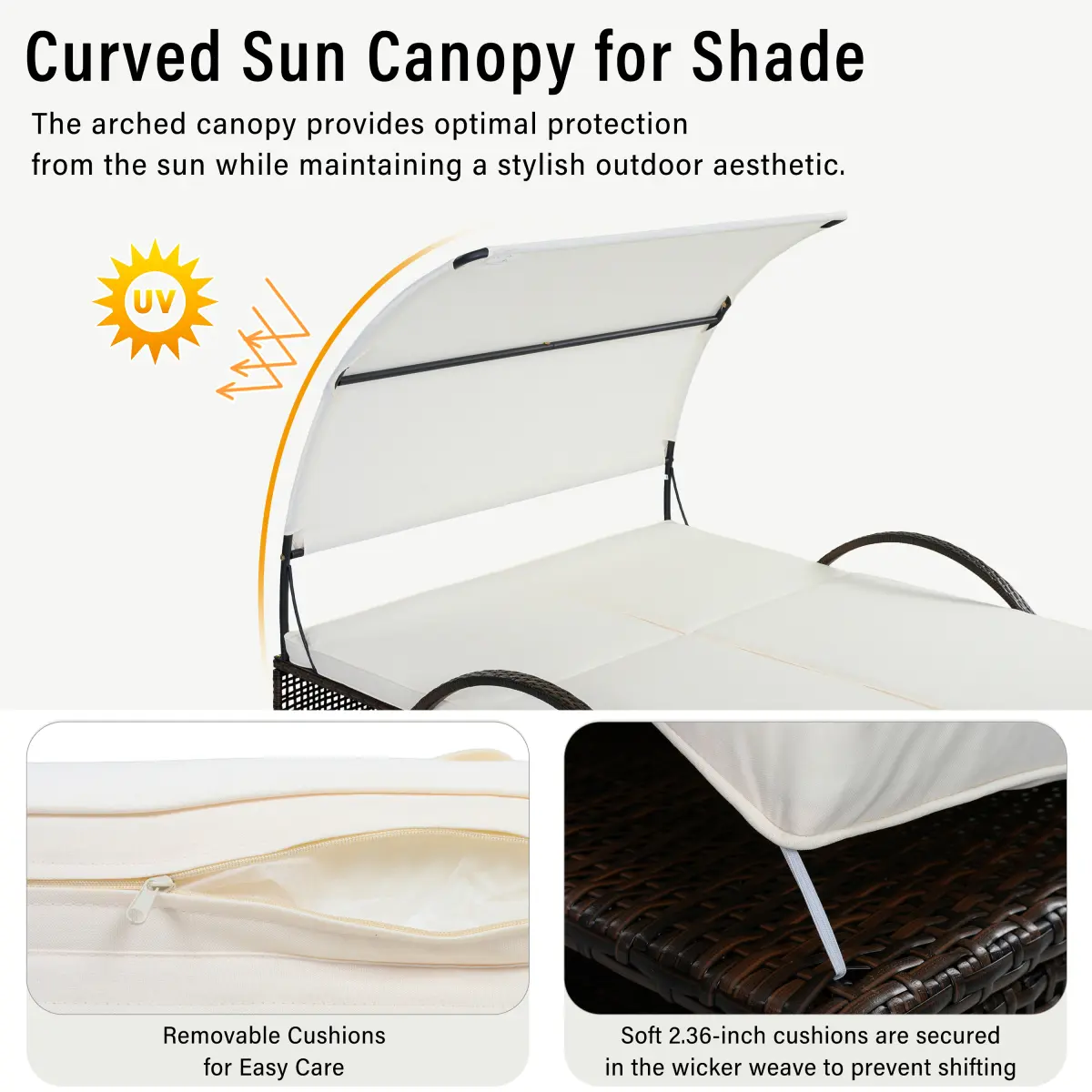 Curved Sun Canopy for Shade&Removable Cushions