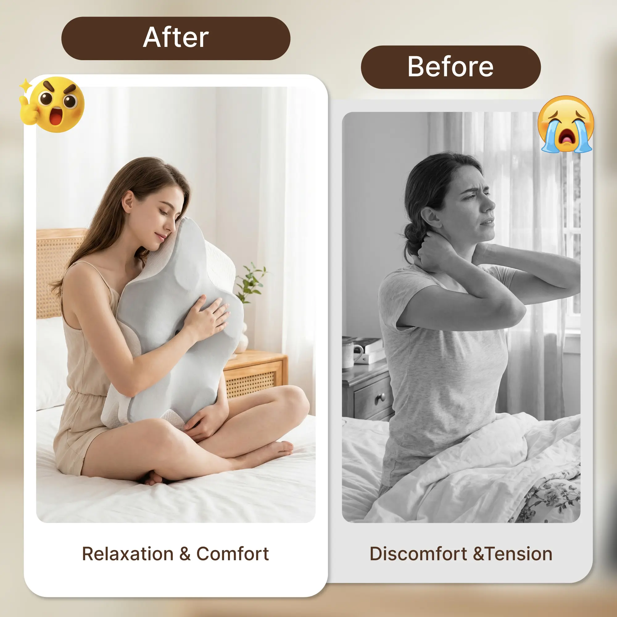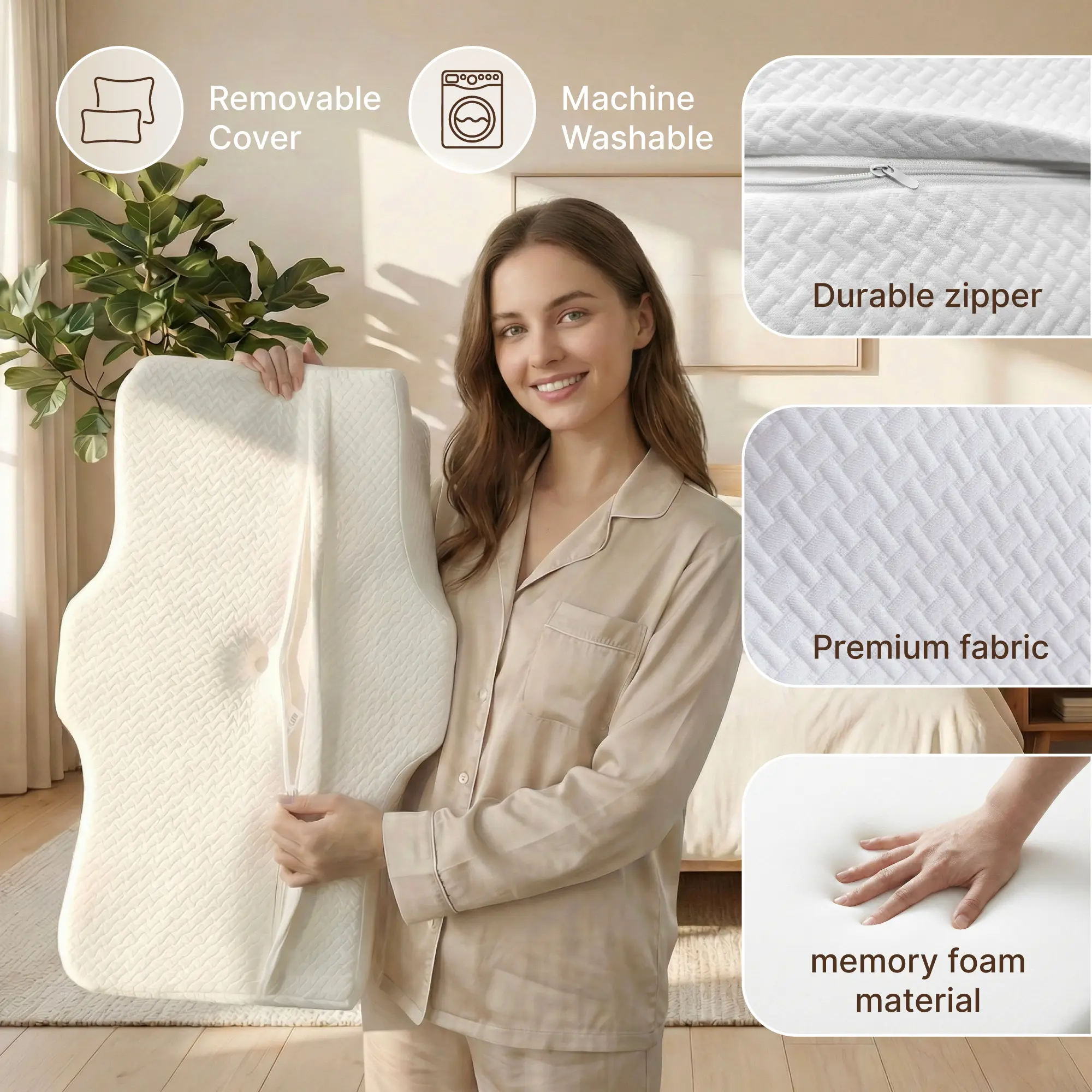 Scientifically shaped to fit the natural curve of your neck and shoulders, helping improve sleeping posture and reduce discomfort caused by improper pillow height or poor sleeping positions.