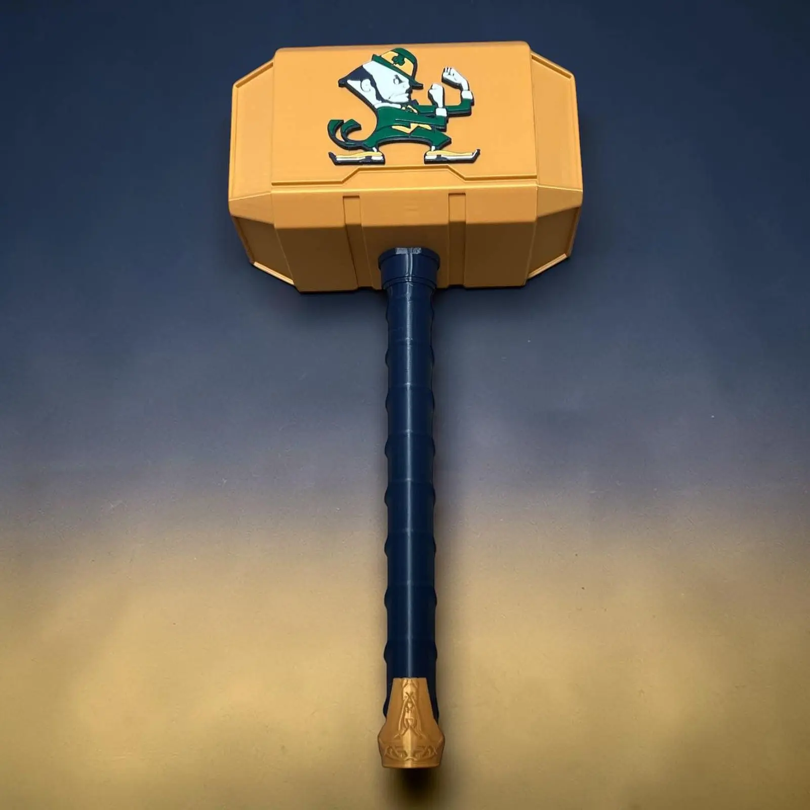 Search Tags: Thorr hammer, college Thorr hammer, leprechaun hammer, college football décor, fan cave prop, game room hammer, sports collectible, 3d printed hammer, football fan gift, shelf décor, desk display, college fan item
